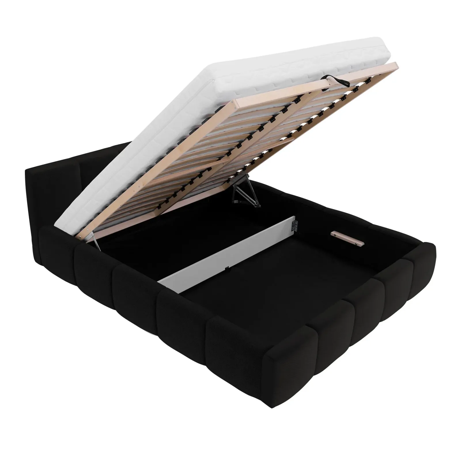 Letto matrimoniale 160x200cm con rete contenitore imbottito nero Aluna
