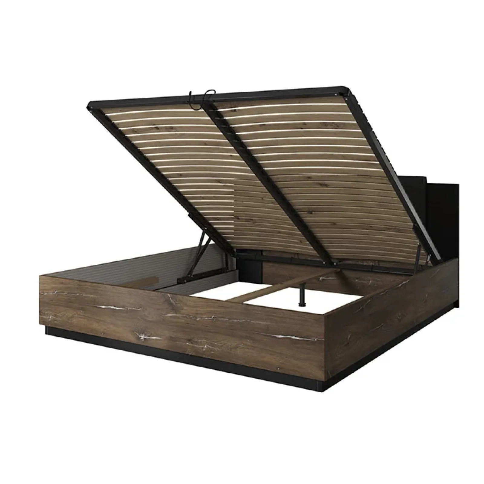 Letto matrimoniale 160x200cm con rete contenitore rovere scuro nero Vulcano