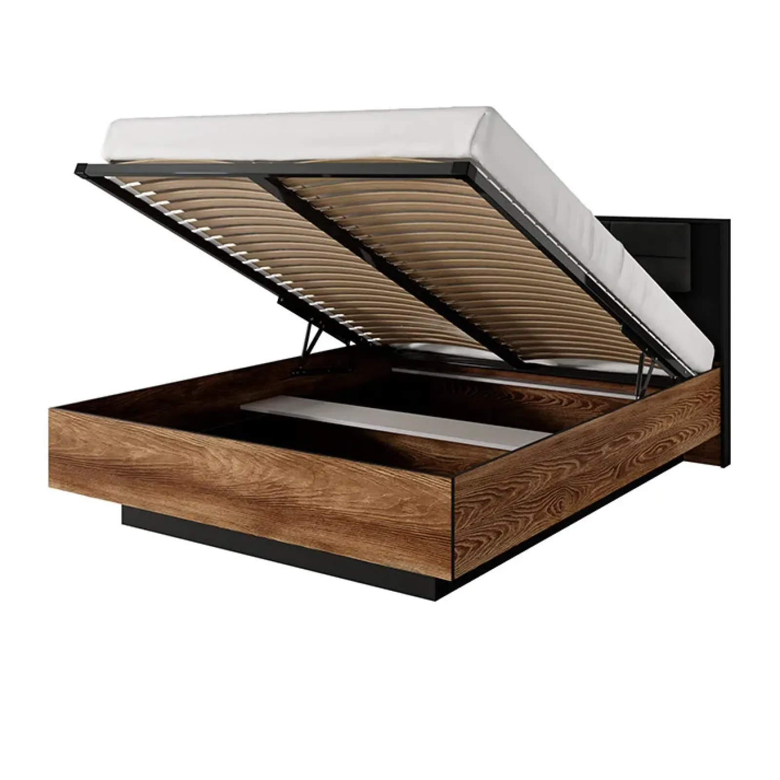 Letto matrimoniale contenitore 160×200 cm quercia nero Smooty: il letto dal confort indimenticabile e dal design moderno.