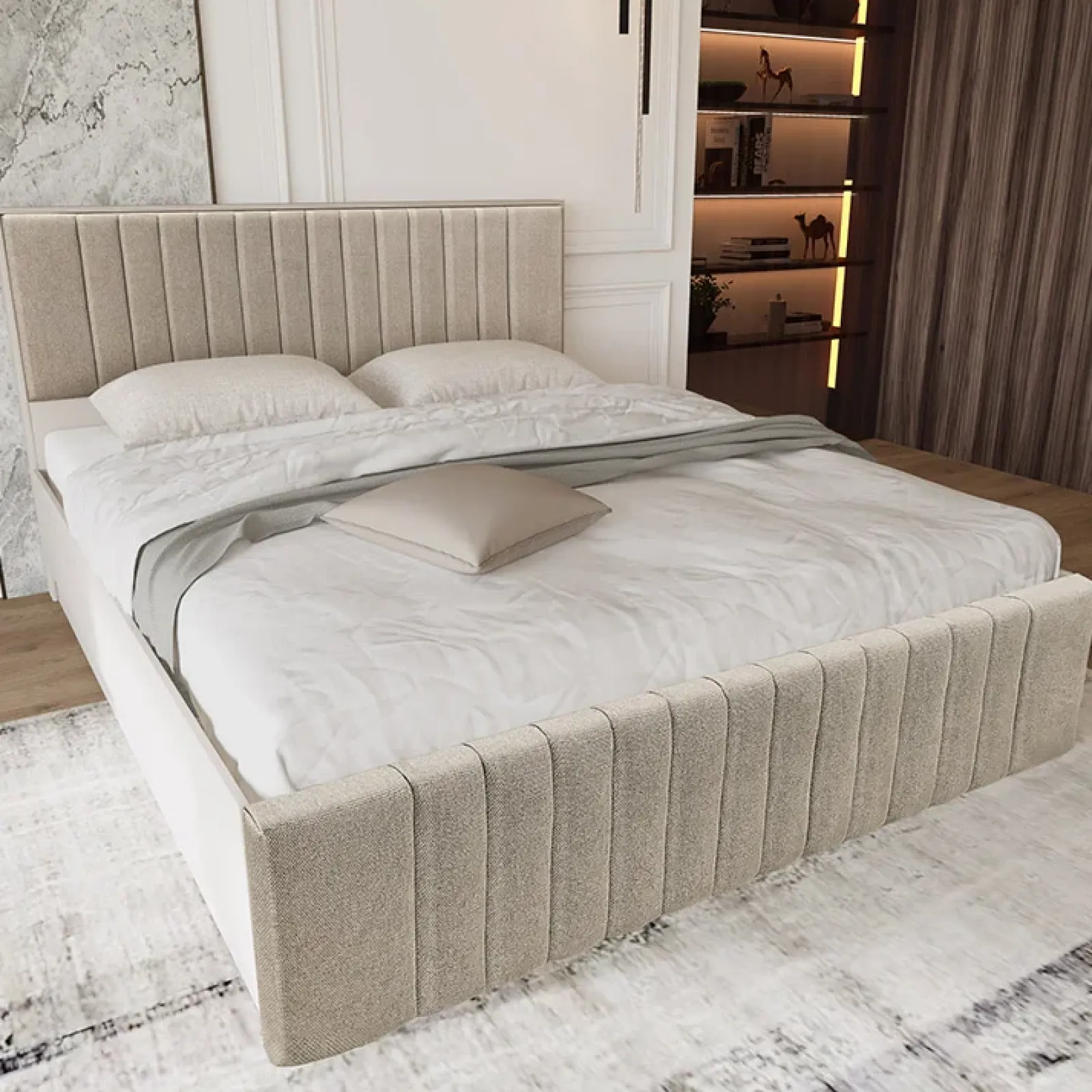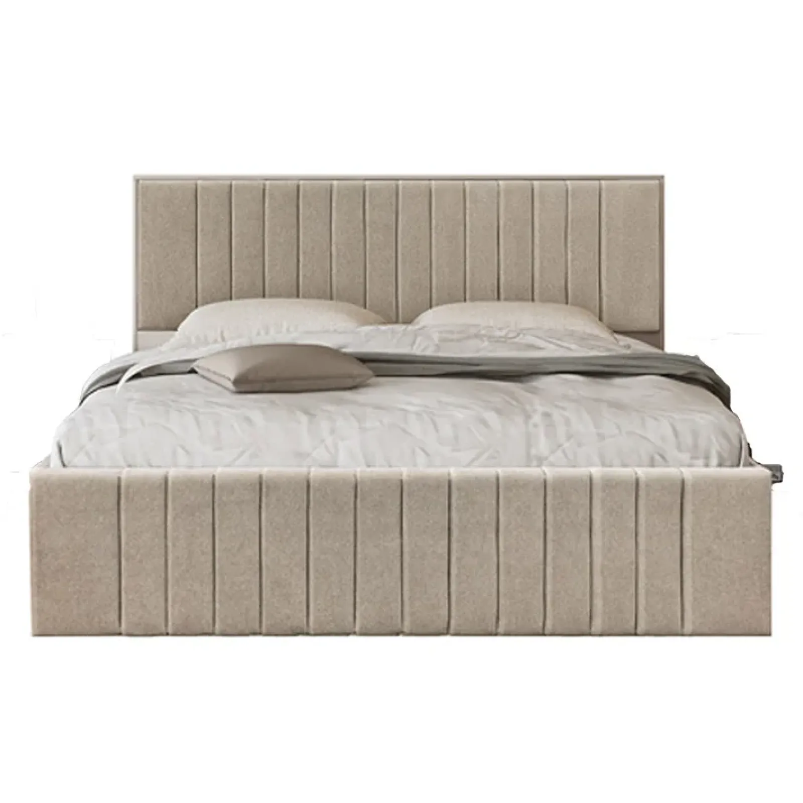 Letto matrimoniale 160x200cm imbottito con contenitore beige Emporio: il tocco di eleganza che trasforma la tua camera da letto!
