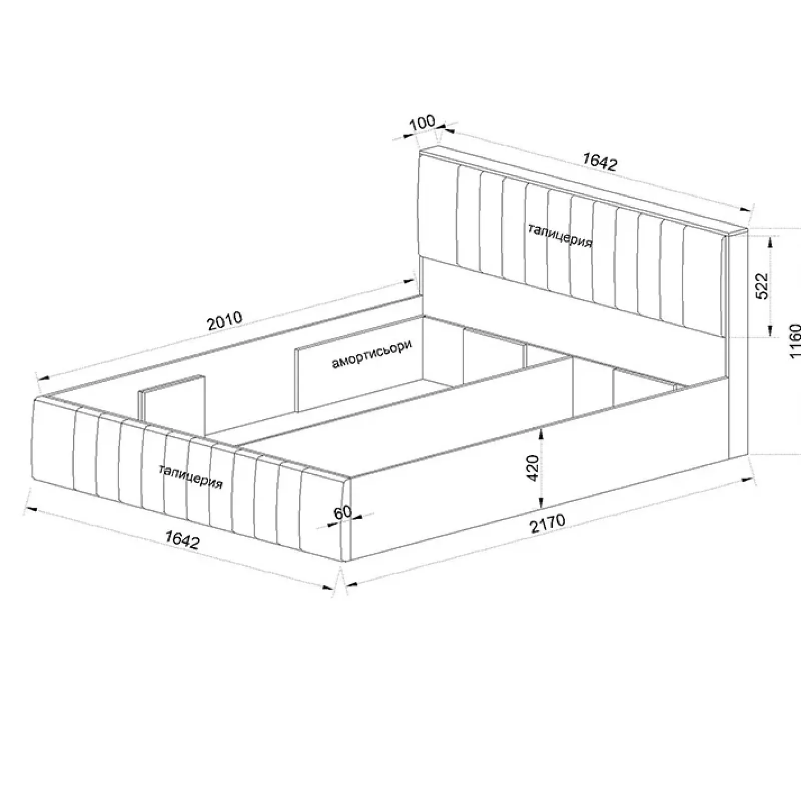 - Letto per rete e materasso 160x200cm (non inclusi)