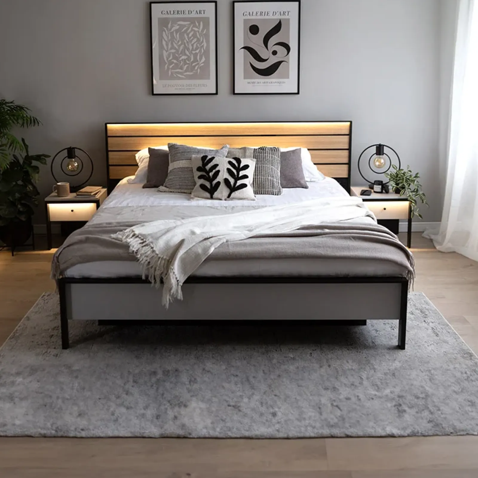 Garnero Arredamenti Letti Oversize-Letto oversize contenitore 180x200cm con LED e presa USB-C grigio nero rovere Luna