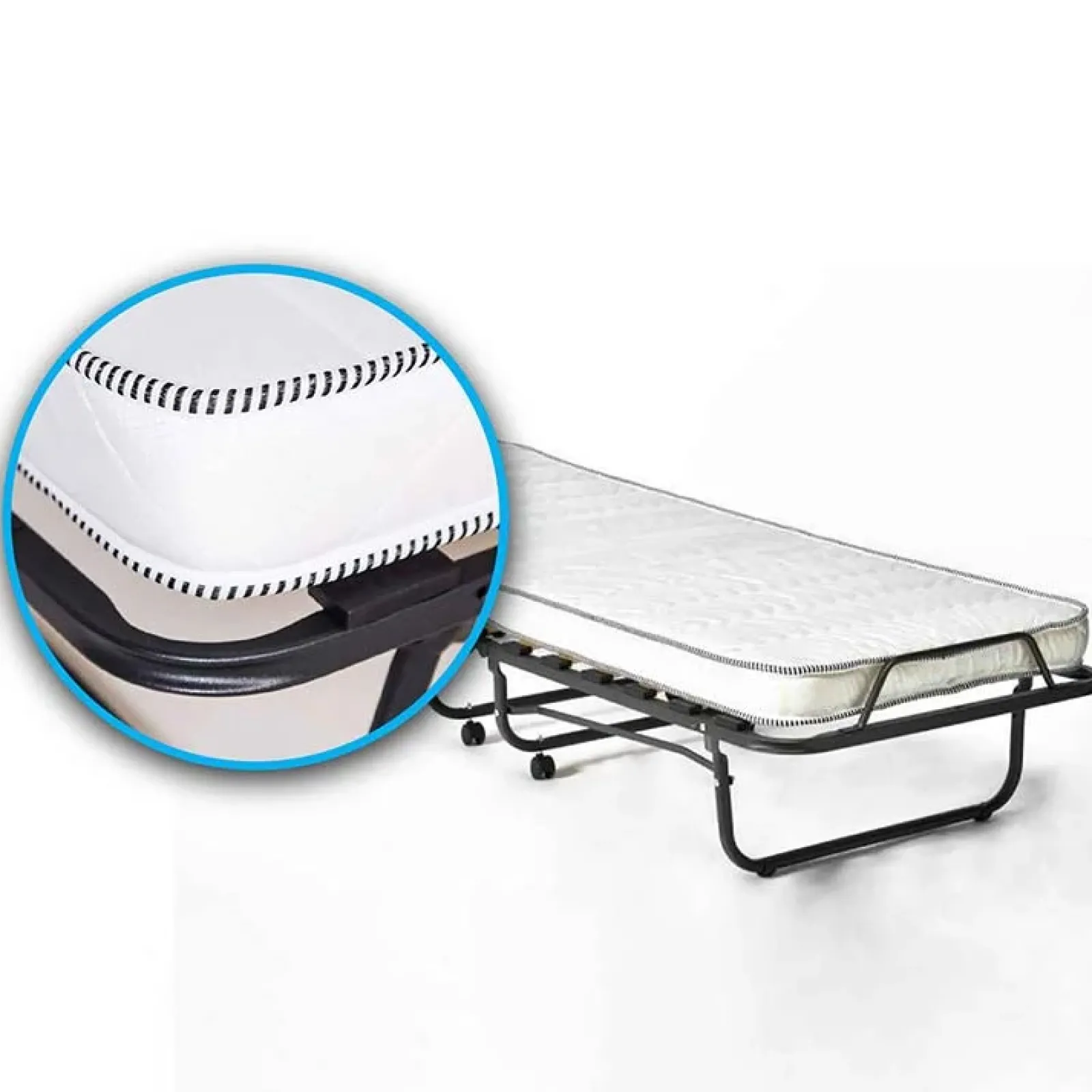 Alba è una comoda soluzione salvaspazio, che può essere ripiegata per risparmiare spazio quando non serve. E’ perfetta da tenere come letto d’emergenza per ospitare amici e parenti all’ultimo minuto, pronta all’uso in pochi e semplici passaggi. E’ inoltre dotata di 4 pratiche ruote per spostarla agevolmente quando è chiusa. Il materasso è realizzato in schiumato ad acqua di alta qualità, ideale per un sonno riposante. Il rivestimento, in tessuto tecnico, garantisce un’elevata traspirabilità. Alba è perfetta anche come letto da campeggio e da viaggio, grazie alla sua maneggevolezza e stabilità.