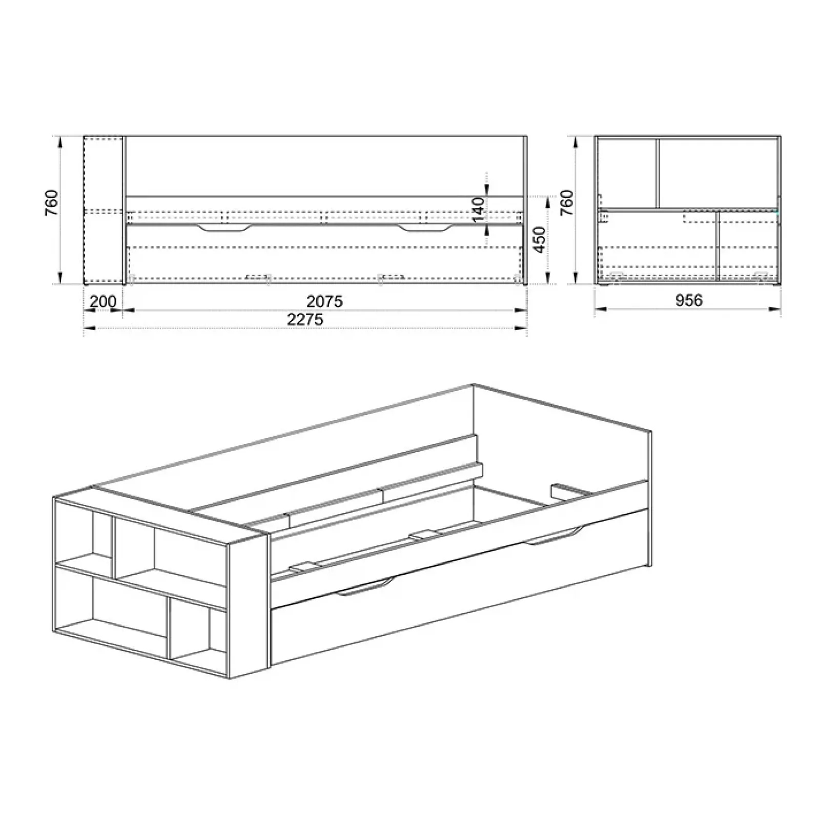 - dimensioni rete e materasso (non incluso): 90 x 200 cm