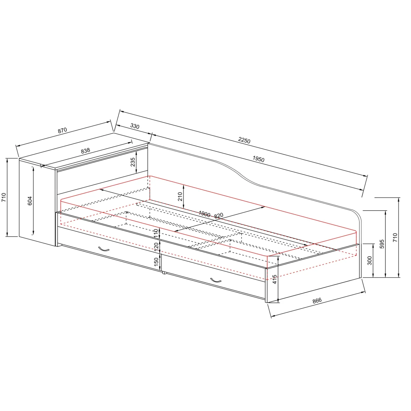 - Dimensioni totali: L.87 x P.228 x H.71 cm