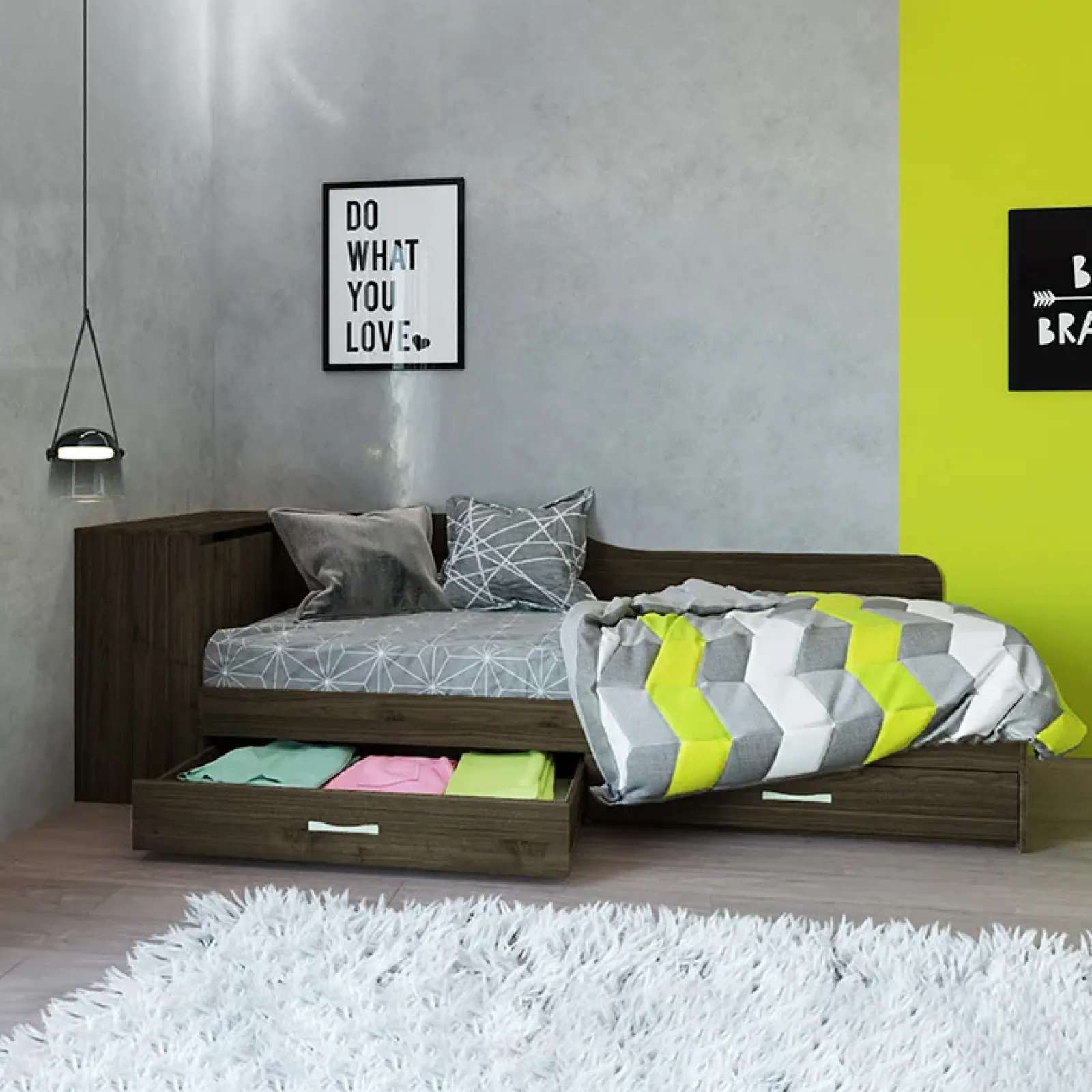 Garnero Arredamenti Letti Singoli|Letti Per Bambini E Ragazzi-Letto singolo con comò e cassettoni 82x190cm Catullo Noce