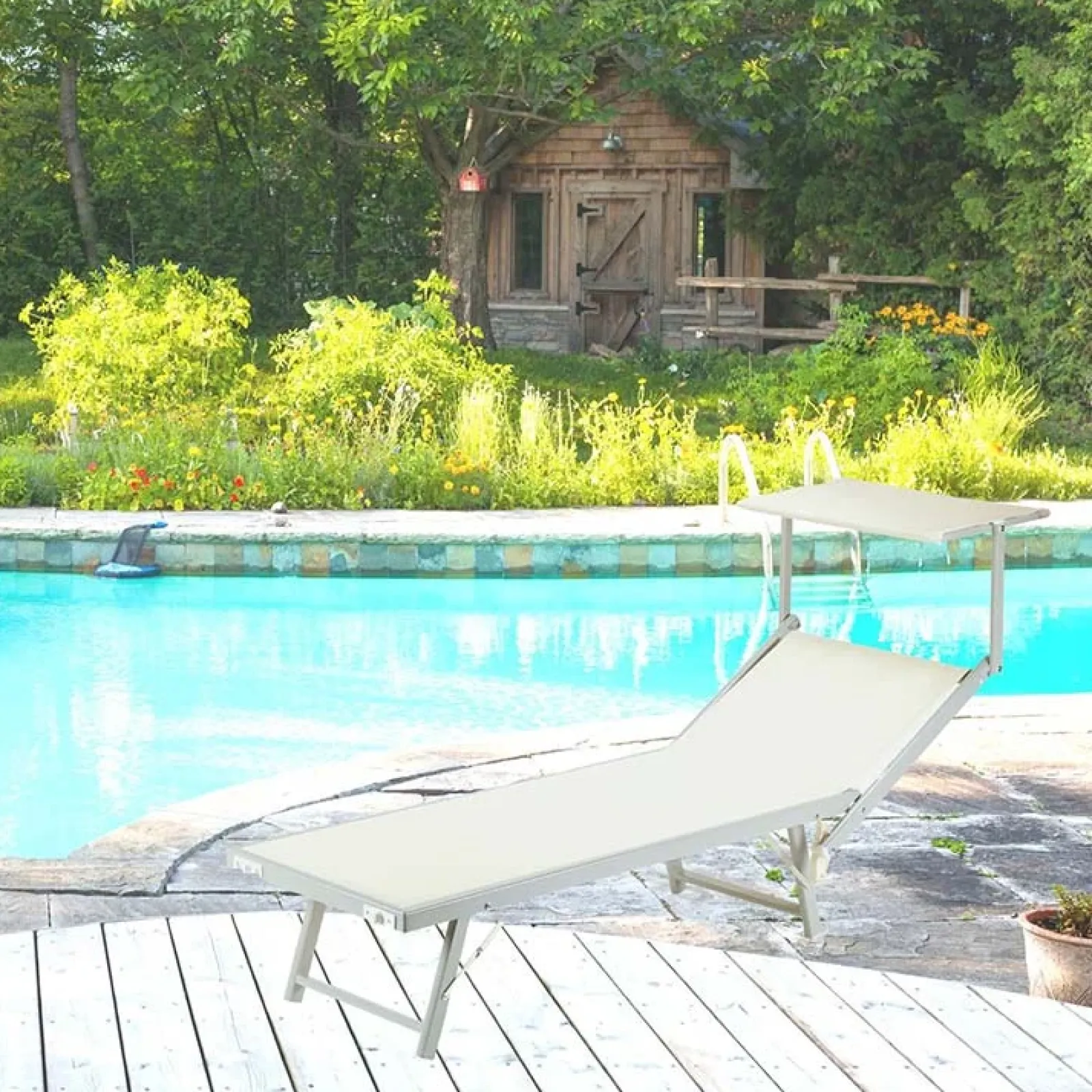 Lettino Malaga in textilene beige è la scelta ottimale per mettere in risalto il tuo gusto raffinato anche quando si tratta di relax.