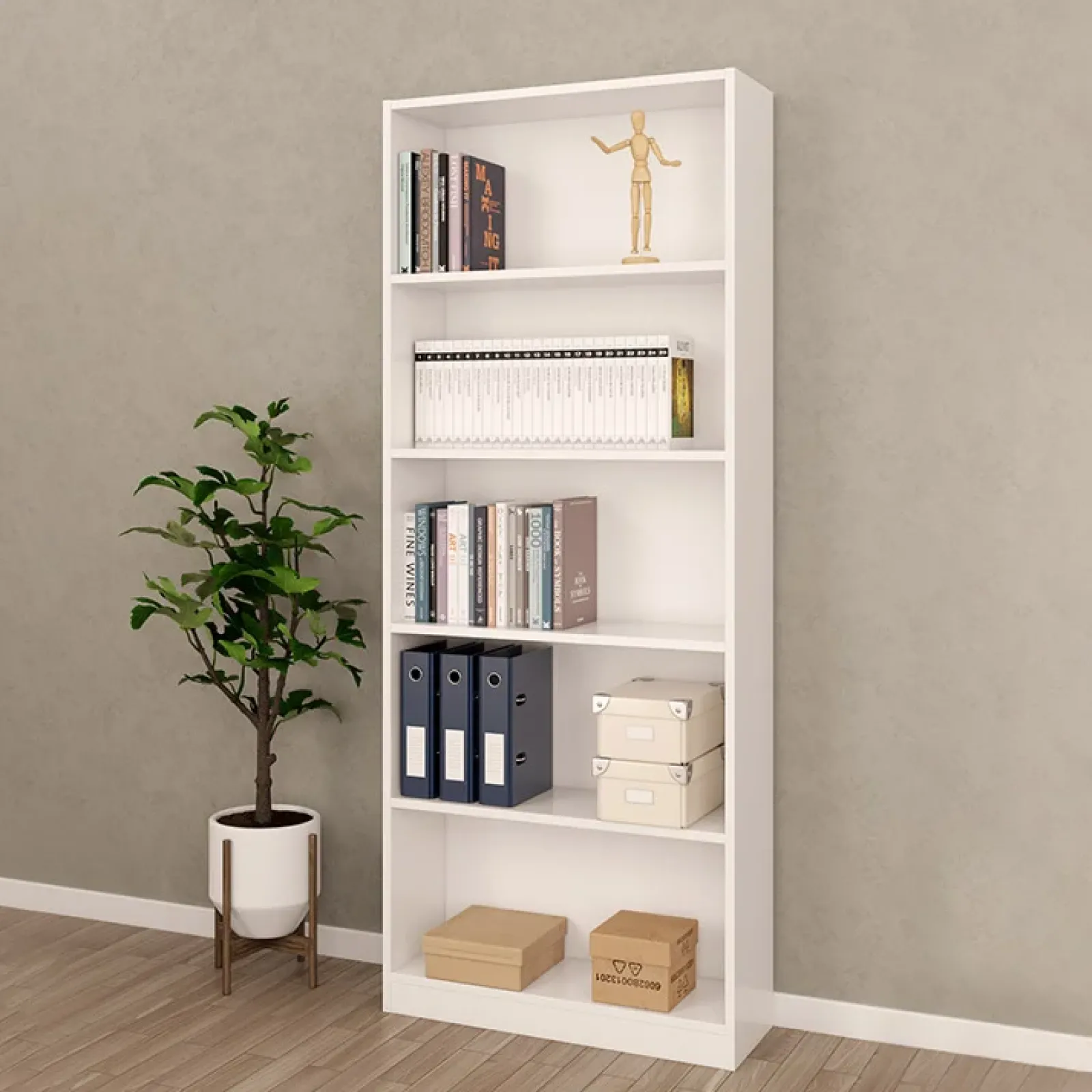 Realizzata nell’intramontabile finitura bianco opaco, dispone di 5 vani a giorno, perfetti per organizzare al meglio i faldoni dell’ufficio o i libri della tua casa.
