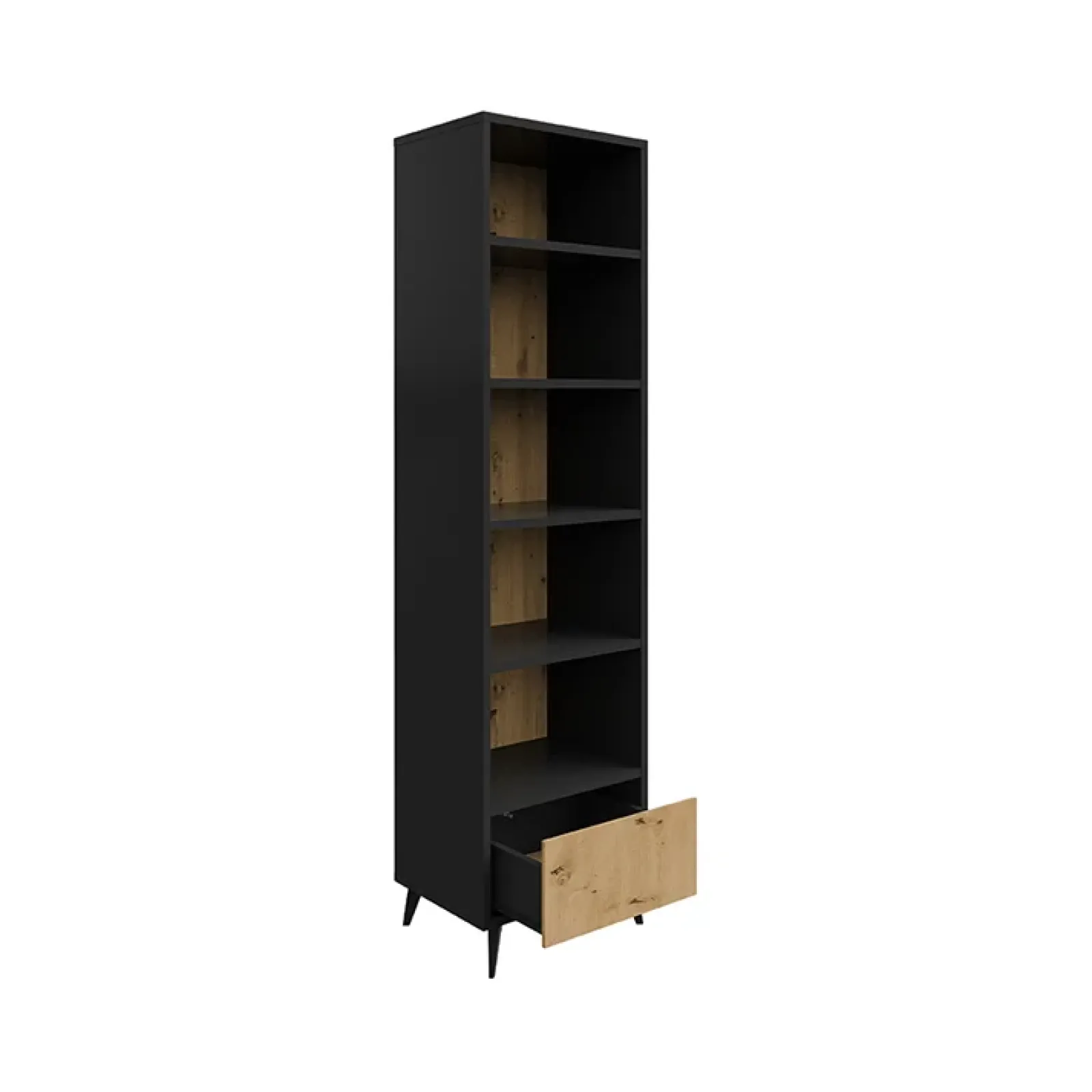 Libreria 50x192cm 5 vani a giorno 1 cassetto rovere nero Hans