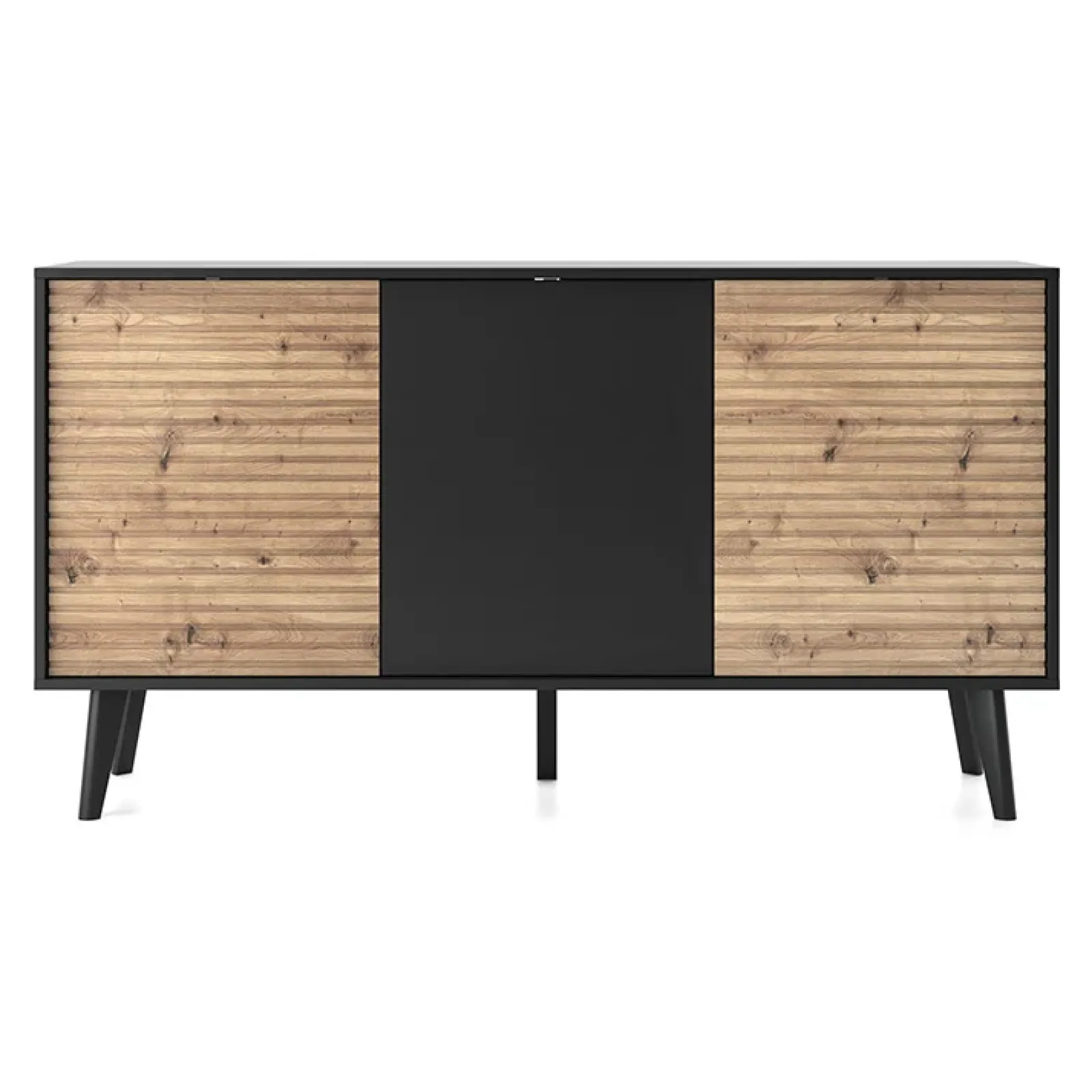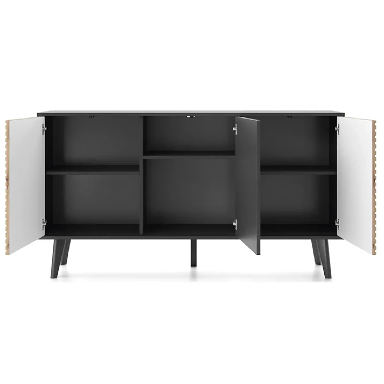 Garnero Arredamenti Madie Moderne|Madie Moderne-Madia 154x83h cm 3 ante soggiorno design rovere cannettato nero Tonk