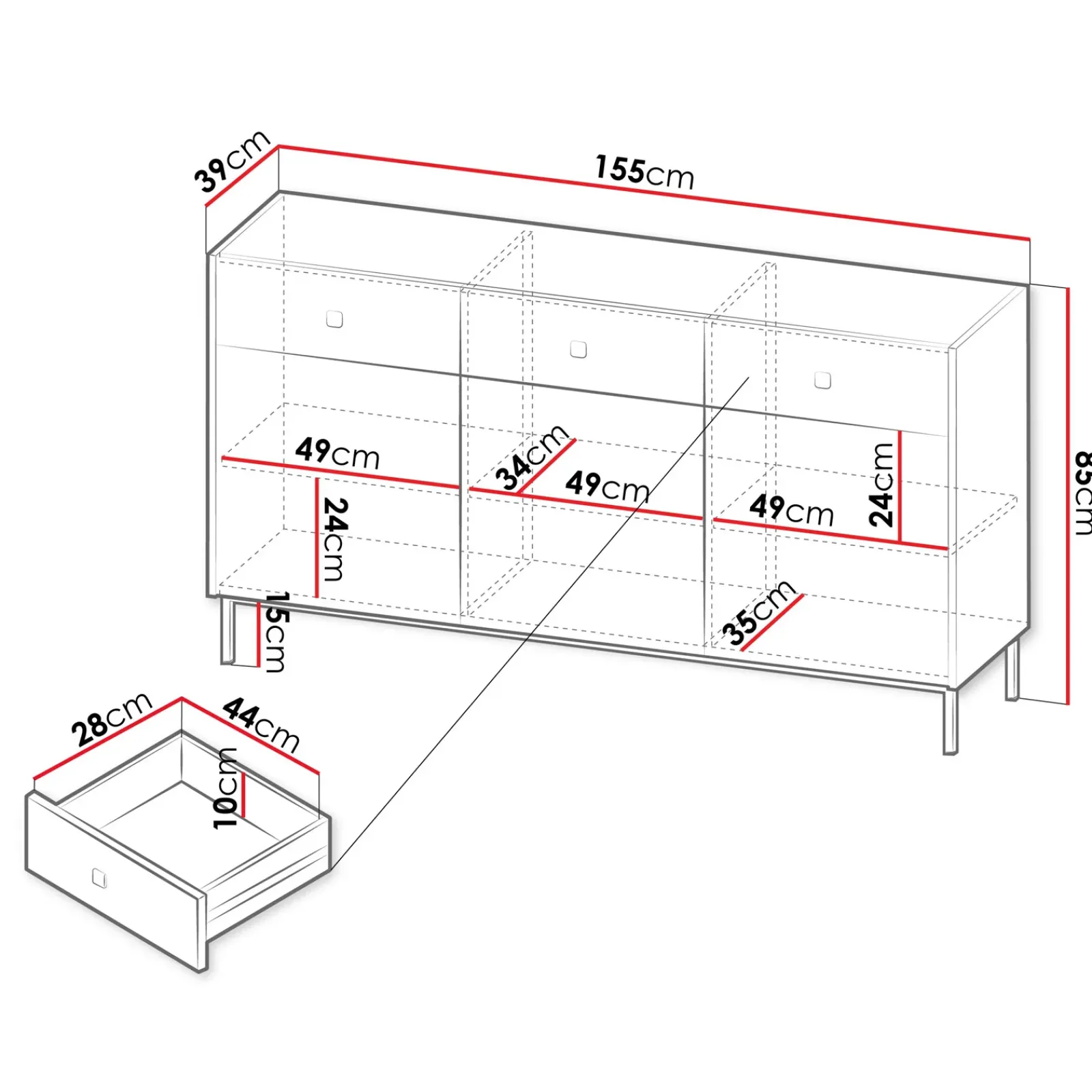 Se pensi che un mobile non possa unire bellezza e funzionalità, è perché non hai ancora avuto il piacere di scoprire la madia 3 ante 3 cassetti Giuggiola! Questo mobile dimostra che eleganza e praticità possono convivere, trasformando il tuo soggiorno in uno spazio davvero speciale! La sua finitura bianco opaco non solo illumina lo spazio, ma aggiunge anche un’eleganza semplice e raffinata, rendendola perfetta per chi desidera uno stile moderno e senza tempo.. È dotata di tre cassetti nella parte superiore,che offrono ampio spazio per riporre accessori come documenti, penne, chiavi e piccoli oggetti personali, rendendo l’organizzazione semplice e accessibile. Le tre ante si aprono su sei ampi vani interni, divisi da tre ripiani eleganti, ideali per contenere oggetti più voluminosi come coperte, scatole di giochi, libri o accessori per la casa, mantenendo tutto in perfetto ordine. Le pratiche maniglie in metallo dorato non solo rendono l’apertura dei cassetti facile e fluida, ma creano anche un piacevole contrasto con la finitura nera, attirando l’attenzione. Le ante, prive di maniglie, si aprono comodamente grazie al comodo sistema push to open. Inoltre, la struttura poggia su piedini in metallo dorato, che non solo aggiungono un tocco di lusso e stile, ma garantiscono anche stabilità e durata nel tempo. Questi piedini elevano il mobile, rendendo più facile la pulizia e donando un aspetto leggero e contemporaneo. La superficie superiore offre spazio sufficiente per esporre decorazioni come lampade d’atmosfera, piante, opere d’arte e fotografie, permettendoti di creare un ambiente personale e accogliente. Trasforma il soggiorno in uno spazio funzionale e invitante, dove ogni elemento riflette il tuo stile e la tua unicità! Grazie al suo design minimalista, la madia Giuggiola si integra perfettamente in qualsiasi arredo, portando un tocco di classe che resiste nel tempo. Disponibile anche in altre finiture!