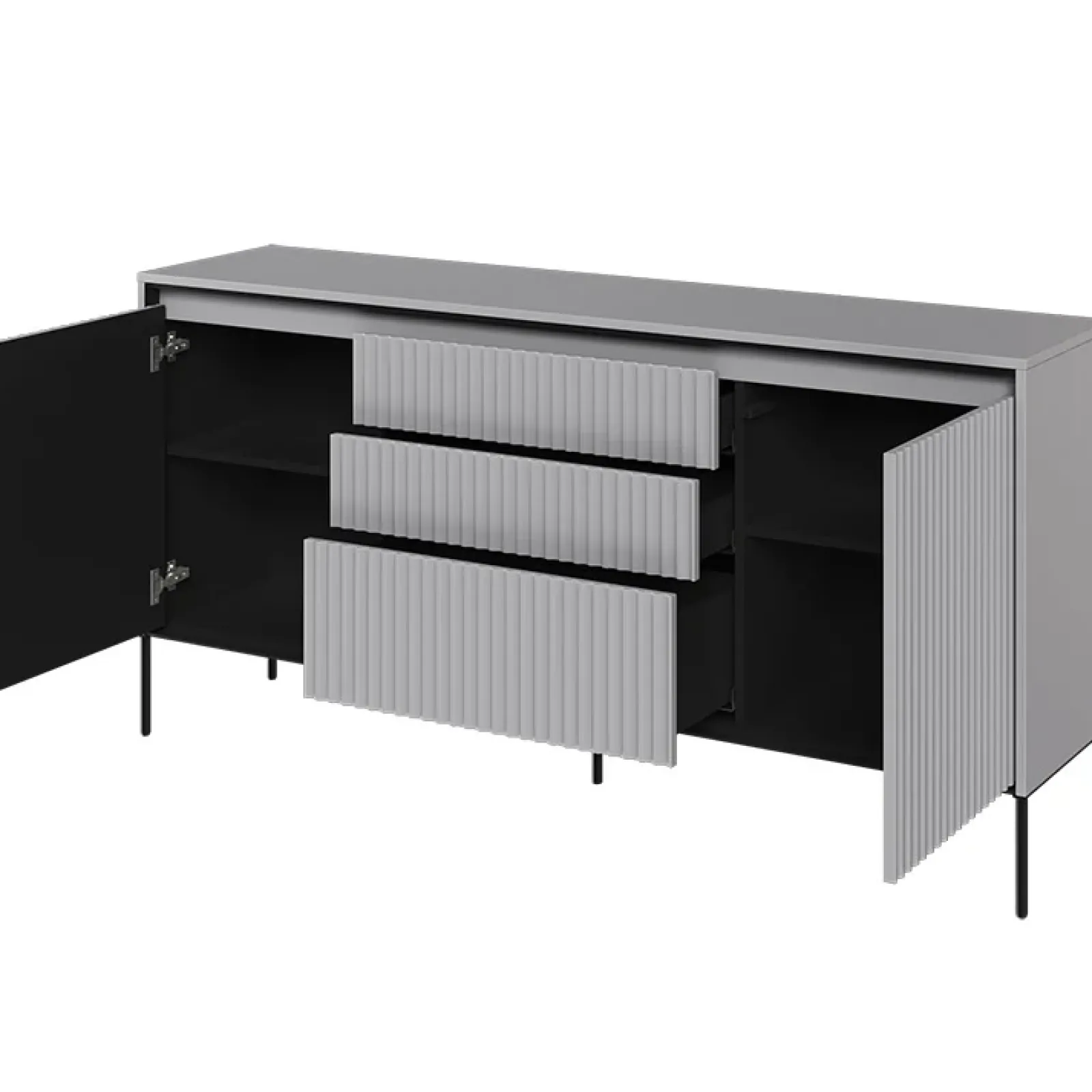 Garnero Arredamenti Madie Moderne|Madie Moderne-Madia 166x83h cm 2 ante 3 cassetti con led cannettato nero Camelia Grigio