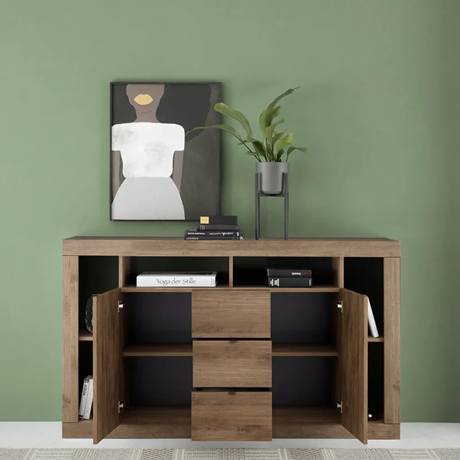 Madia moderna soggiorno 172x102cm 2 ante 3 cassetti rovere scuro Trilogy