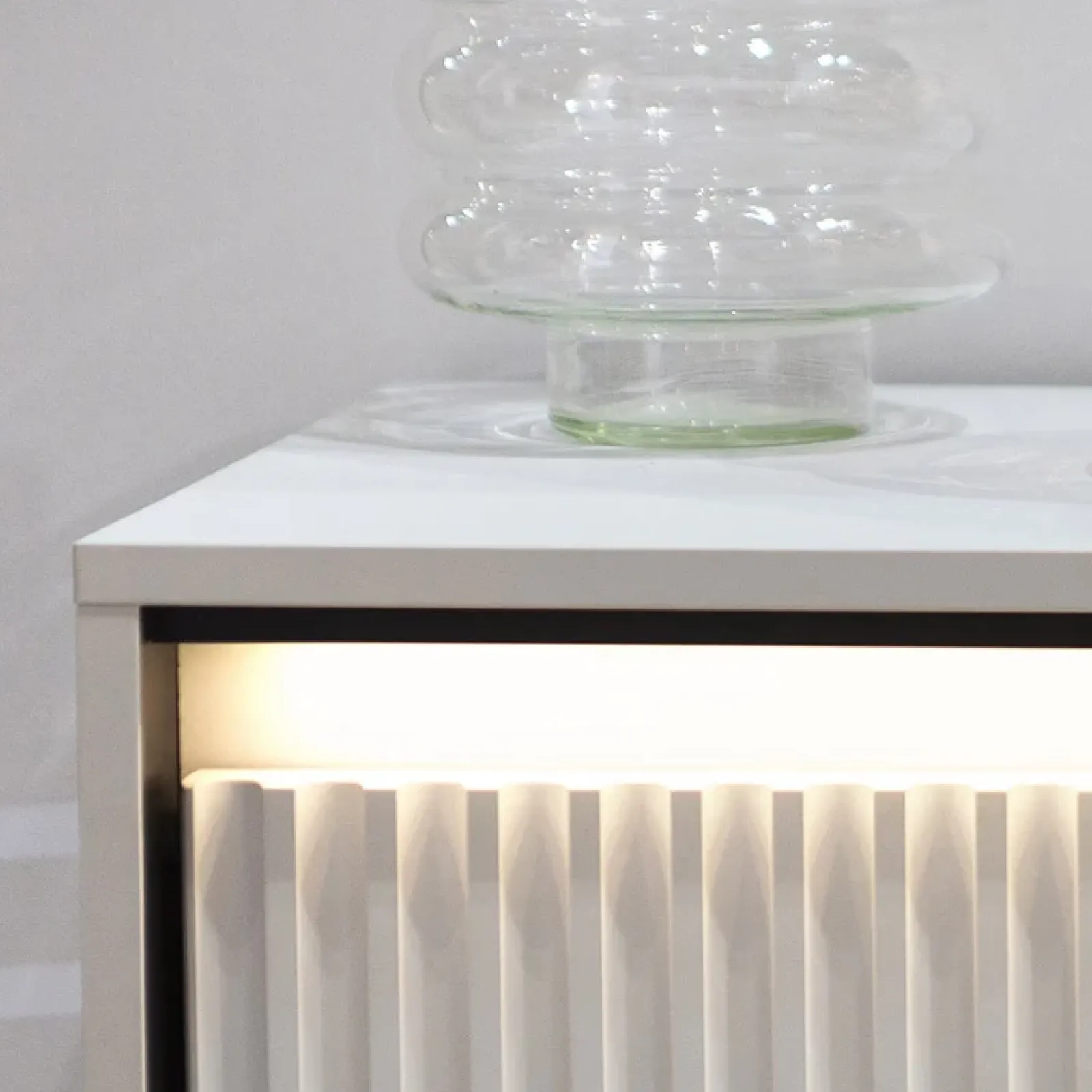 Garnero Arredamenti Madie Moderne|Madie Moderne-Madia 193x83h cm 4 ante con led cannettato nero Camelia Bianco Opaco