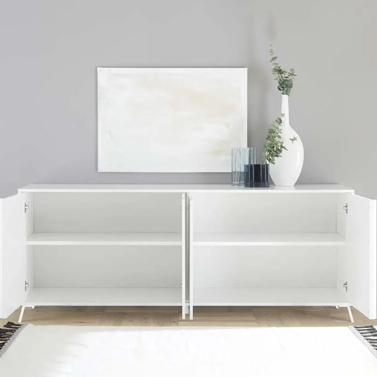 Madia moderna soggiorno 4 ante 205x84cm bianco lucido Tosca