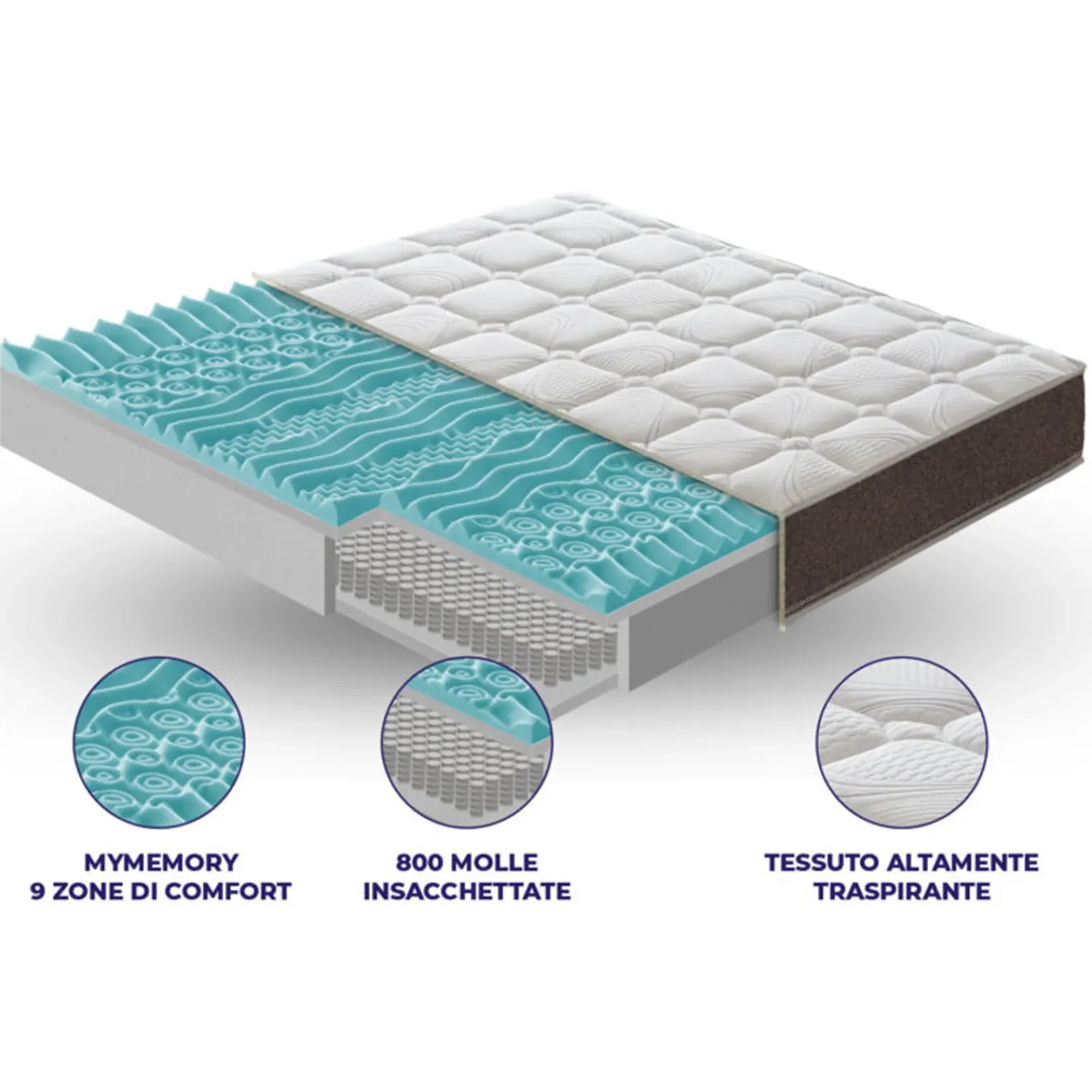 Materasso matrimoniale memory Perla molle insacchettate 160 x 190 cm 9 zone