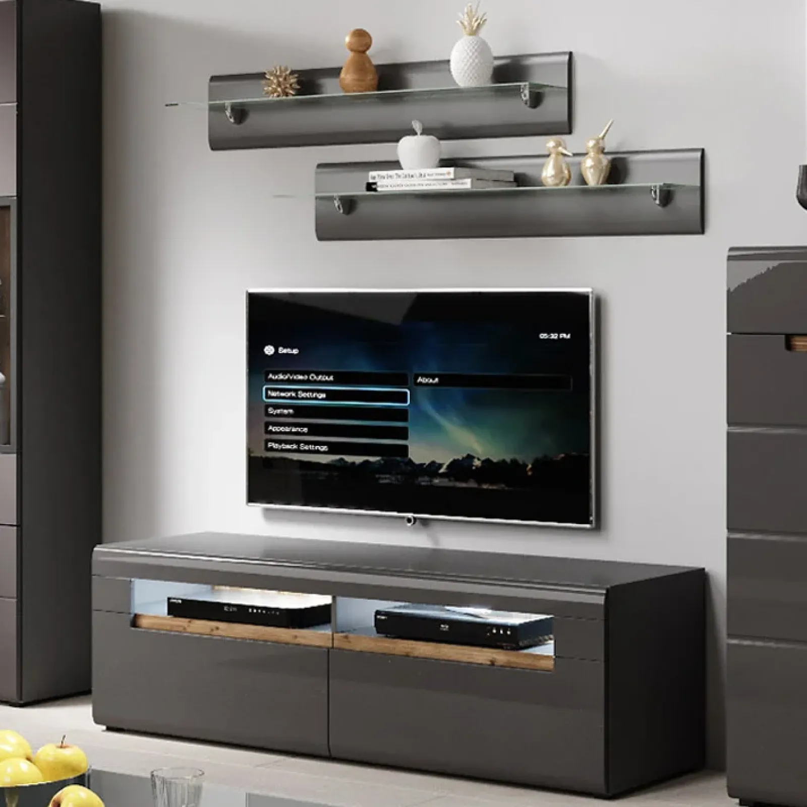 Mensola Gordon 120 antracite lucido vetro, un pratico oggetto di design che dona un’atmosfera giovanile alla tua zona living.