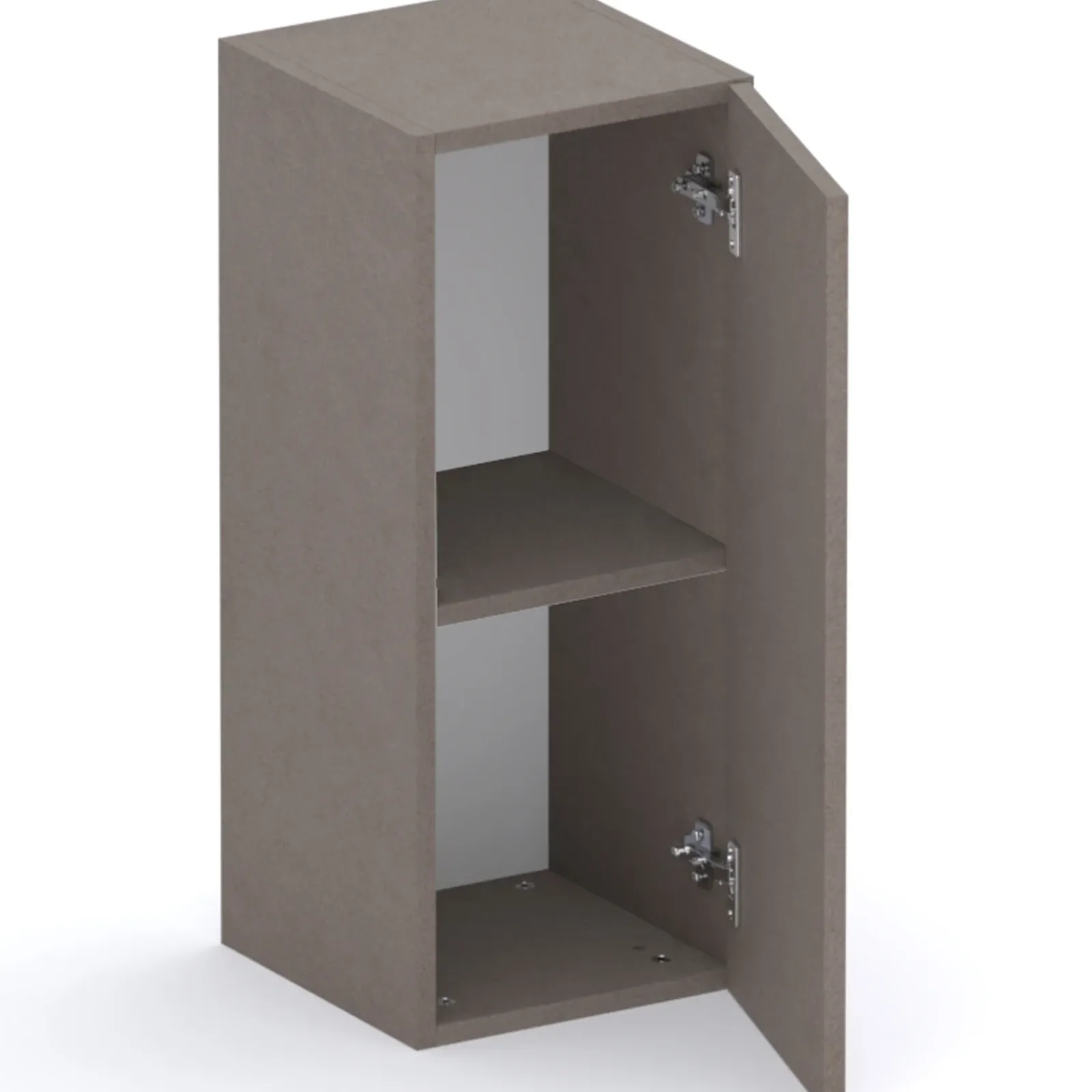 All’interno, il pensile presenta un unico vano ampio, perfetto per riporre oggetti di uso quotidiano, libri, decorazioni o accessori, mantenendo tutto a portata di mano e ben organizzato. L’anta reversibile consente di scegliere l’apertura a destra o a sinistra durante l’installazione, adattandosi facilmente alle esigenze del tuo spazio e della tua configurazione d’arredo.