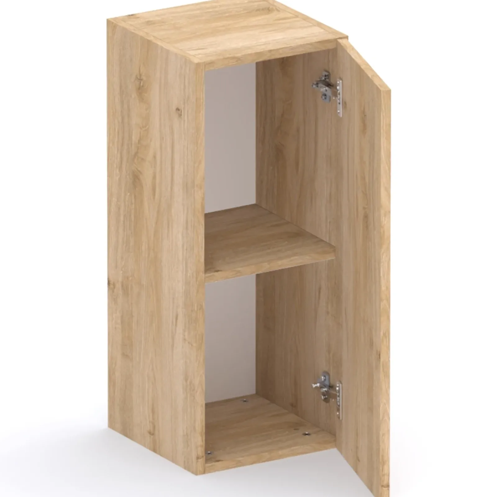 All’interno, il pensile presenta un unico vano ampio, perfetto per riporre oggetti di uso quotidiano, libri, decorazioni o accessori, mantenendo tutto a portata di mano e ben organizzato. L’anta reversibile consente di scegliere l’apertura a destra o a sinistra durante l’installazione, adattandosi facilmente alle esigenze del tuo spazio e della tua configurazione d’arredo.