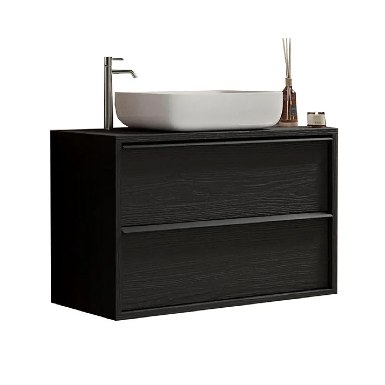 Garnero Arredamenti Mobile Bagno Sospeso-Mobile bagno sospeso 105cm con lavabo 2 cassetti nero frassinato Absolut