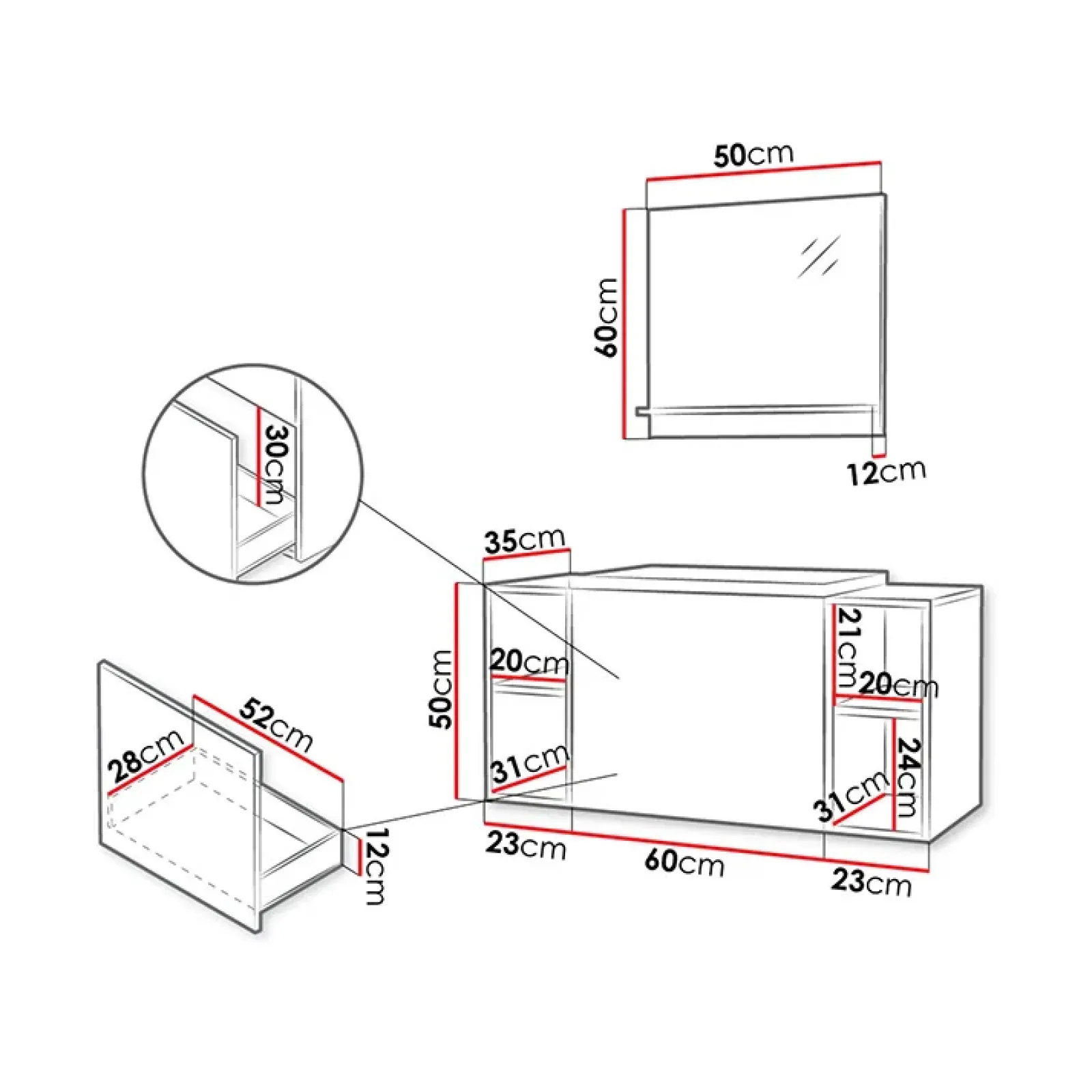 - dimensioni mobile sottolavabo: L.60 x H.50 x P.35 cm