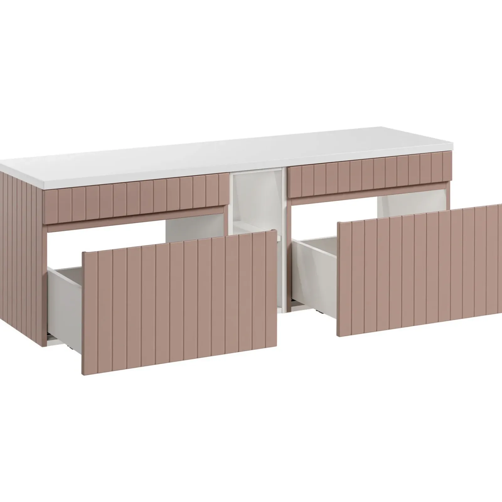 Mobile bagno sospeso 140cm cannettato 2 cassettoni rosa Autentic