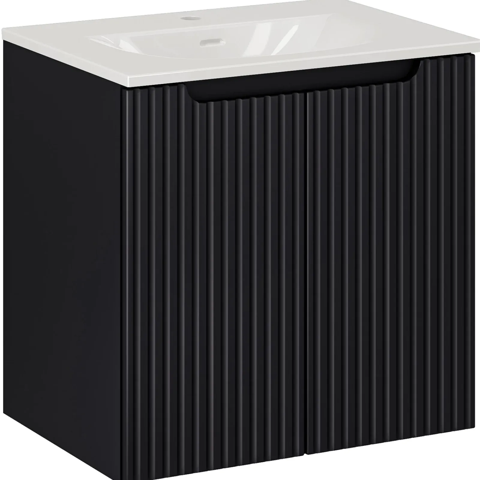 Mobile bagno sospeso 60cm cannettato con lavabo 2 ante nero Cleany