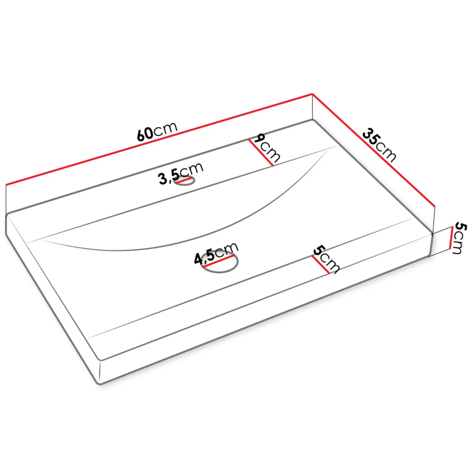 - dimensioni lavandino incluso: L.60 x H.5 x P.35 cm