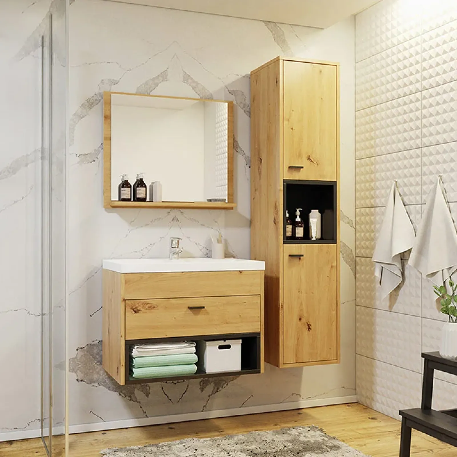 Mobile bagno sospeso moderno 60cm rovere nero Florentina, organizzato ed ordinato, questo set ti permetterà di arredare con stile il tuo bagno.