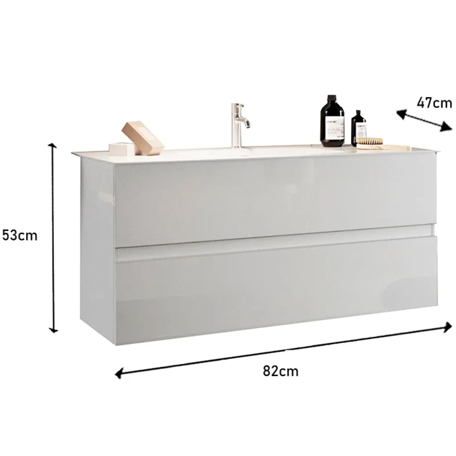 Garnero Arredamenti Mobile Bagno Sospeso-Mobile bagno sospeso 80cm con lavabo 2 cassetti bianco lucido Moon