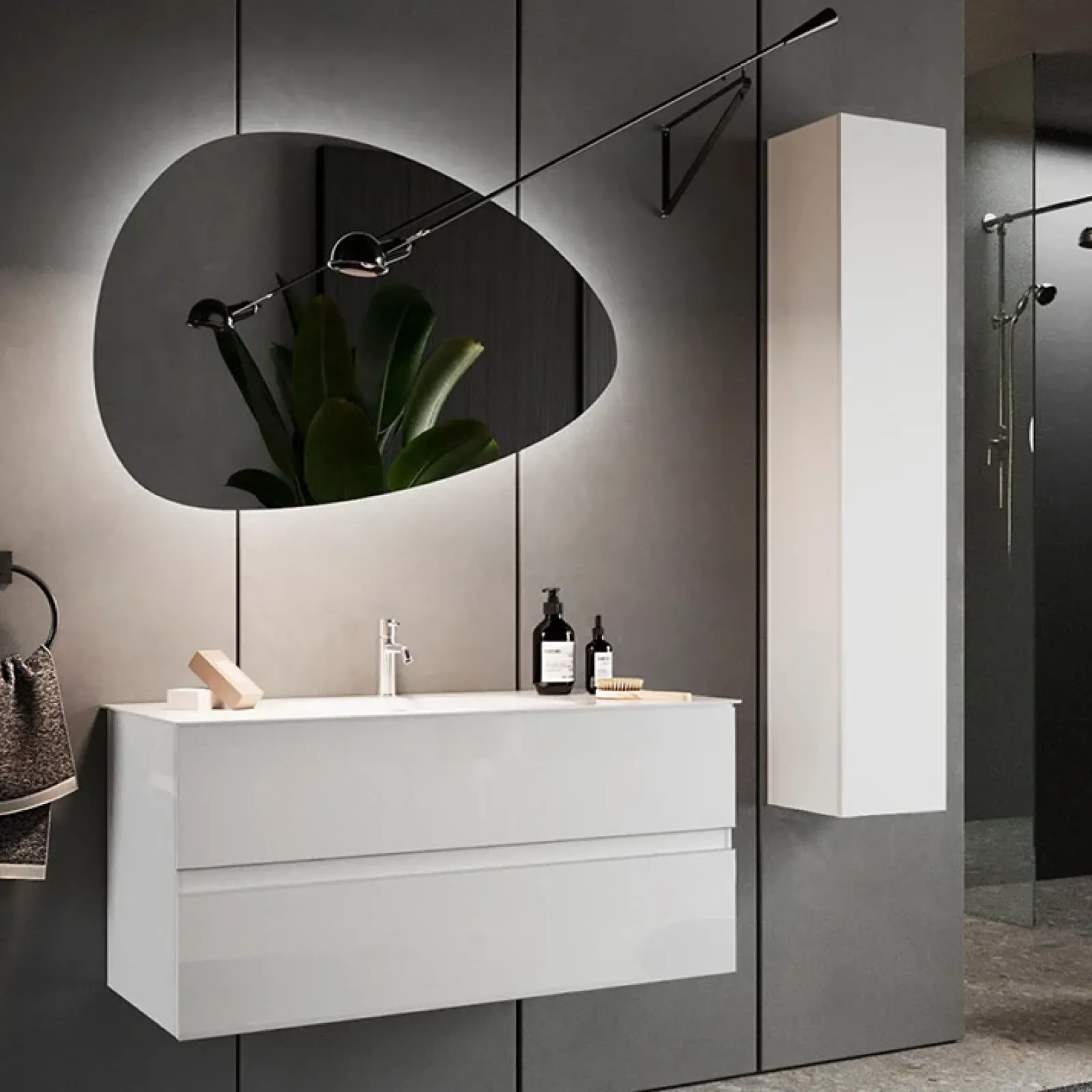 Vuoi arredare con stile ed intelligenza il tuo bagno? Scegliendo la nostra linea Moon certamente non sbaglierai. Fine, elegante e di design è perfetta per gli ambienti più sobri e raffinati. Non pensare, però, che sia noiosa. La finitura bianco lucido le dona infatti la punta di ricercatezza che le serve per essere davvero speciale.