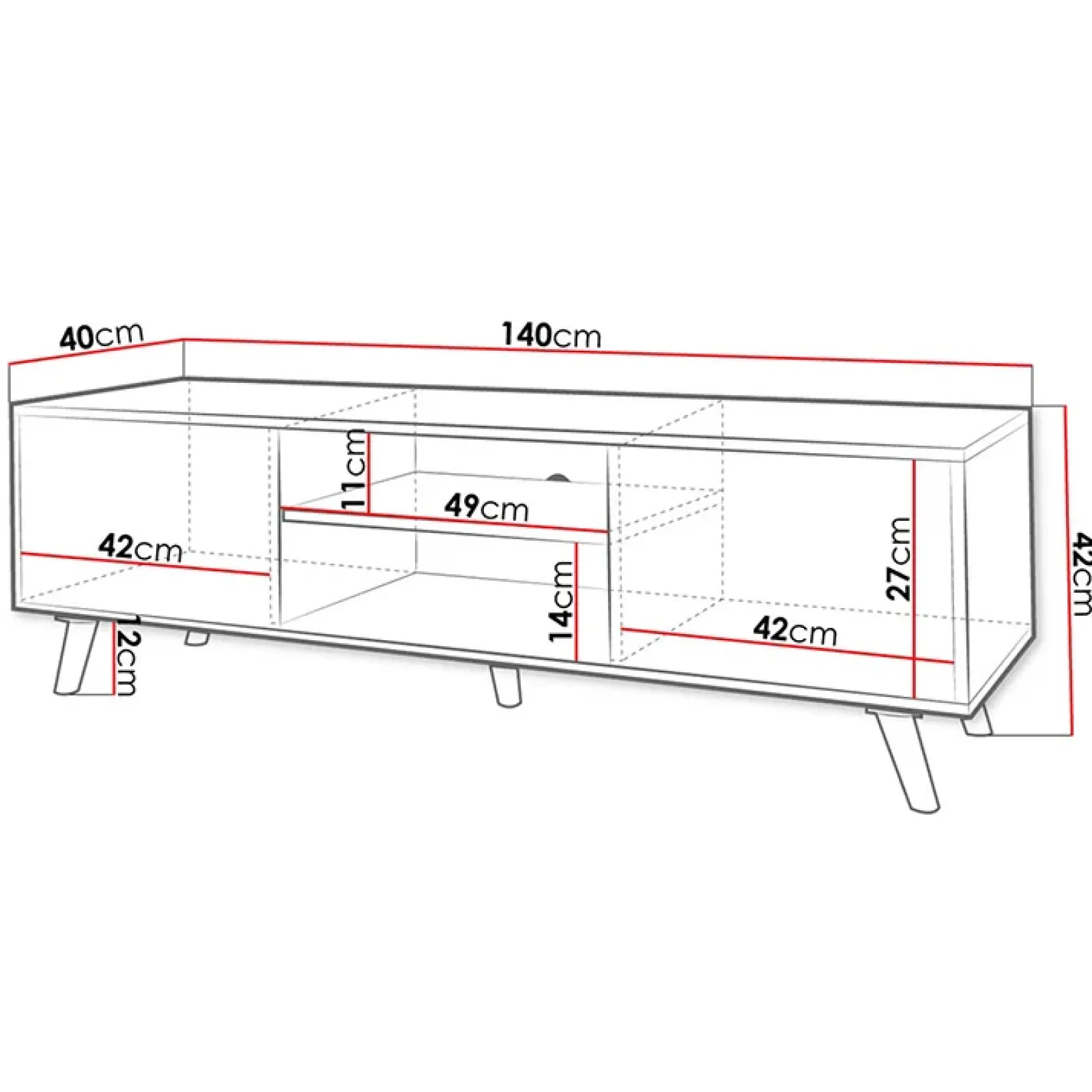 - dimensioni: L.140 x H.42 x P. 40 cm