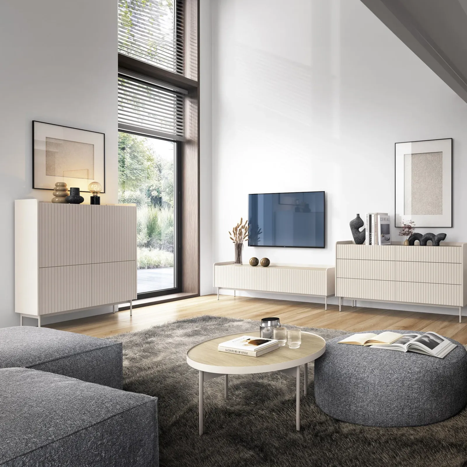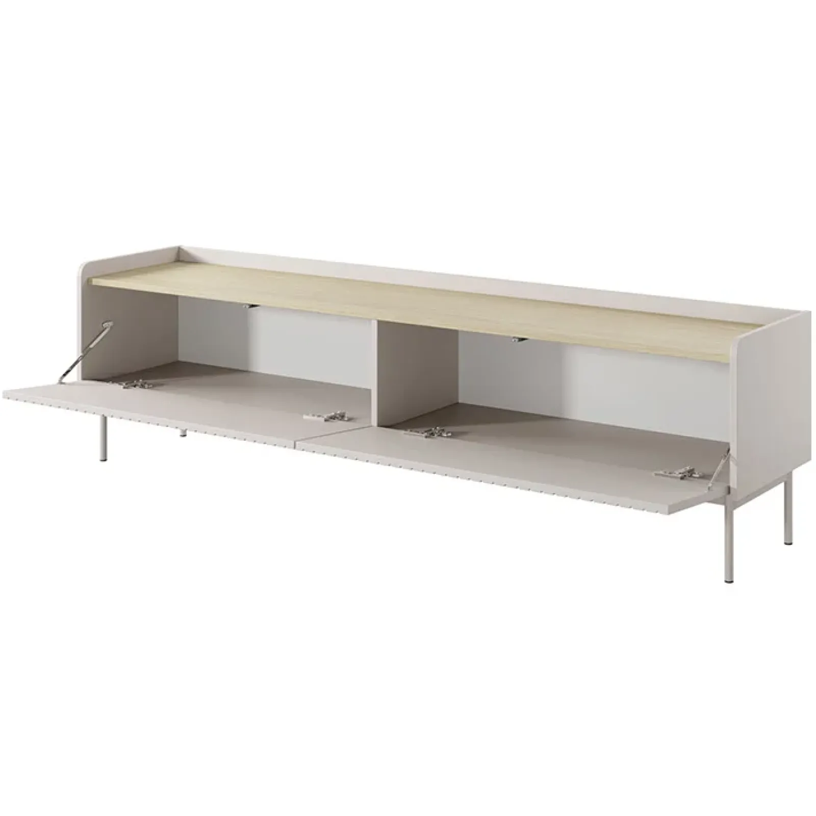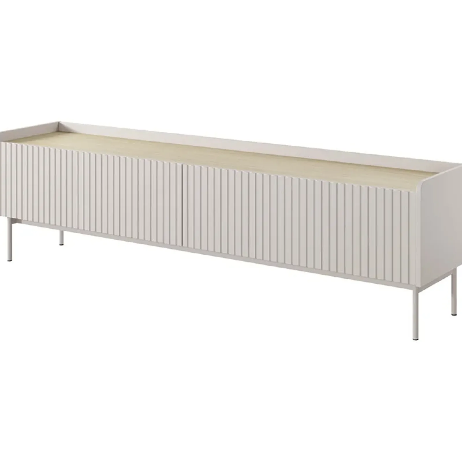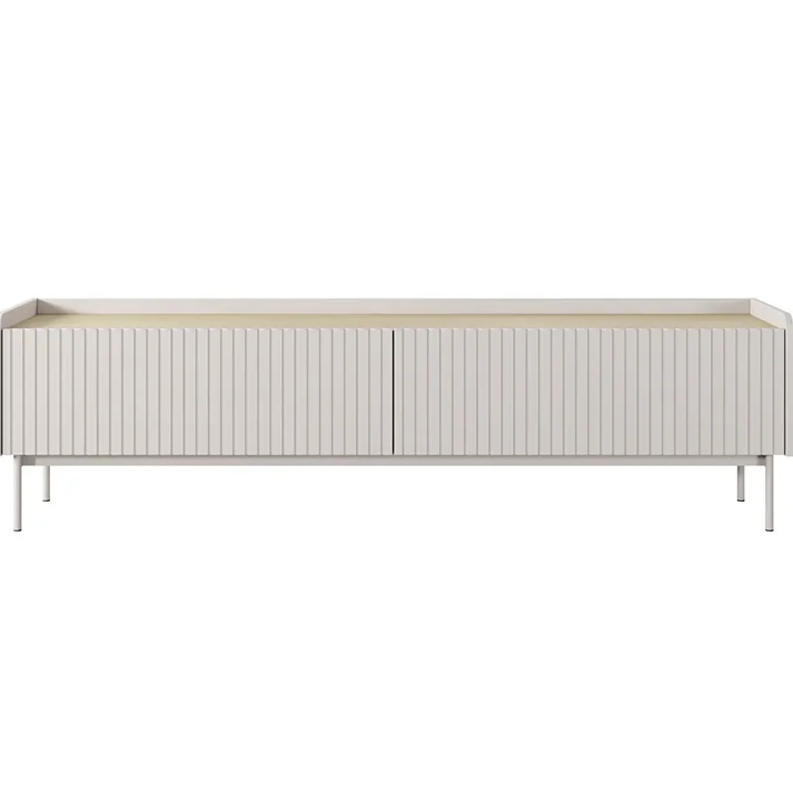 Stai arredando il tuo soggiorno e desideri un mobile che unisca estetica, praticità e versatilità? Il mobile porta TV Fioca è la risposta perfetta alle tue esigenze, pronto a trasformare il tuo spazio in un’oasi di stile e funzionalità!La finitura beige del mobile porta TV Fioca si integra facilmente in diverse combinazioni d’arredo, rendendolo un elemento versatile che si abbina splendidamente sia a colori caldi che freddi! La raffinata lavorazione cannettata dei frontali aggiunge profondità e carattere, rendendolo un pezzo di design ideale per ambienti moderni e minimalisti. Poggiando su eleganti piedini in metallo beige alti 18 cm, questo mobile non solo offre un tocco di leggerezza e stile, ma garantisce anche praticità. Dotato di due ante a ribalta che si aprono su due vani spaziosi, offre un comodo spazio di archiviazione per tenere in ordine dispositivi elettronici, telecomandi e accessori. Perfetto per chi desidera unire funzionalità ed estetica senza compromessi!