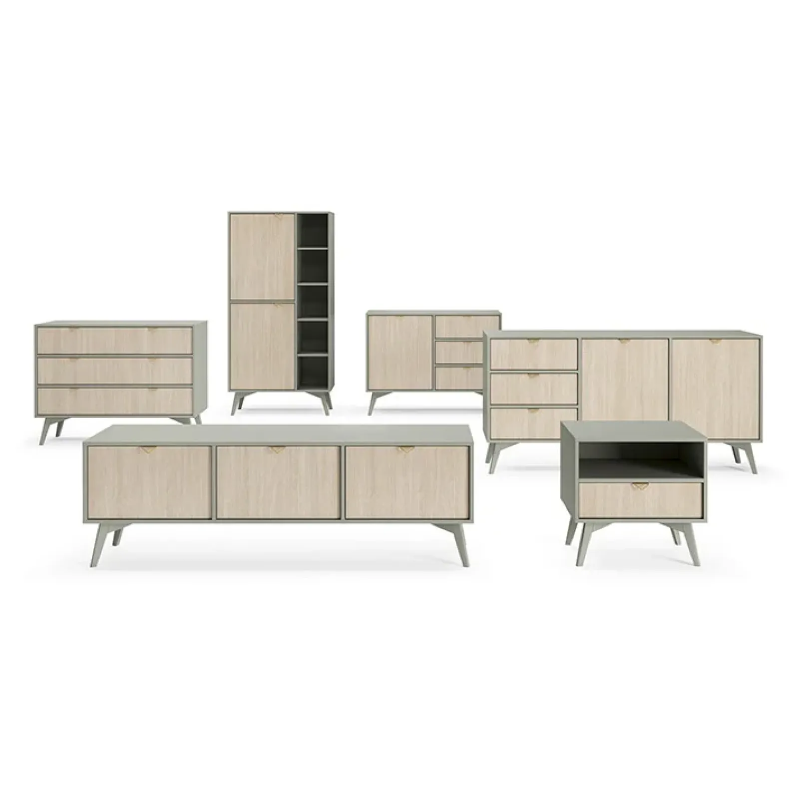 La finitura verde salvia e rovere si accosta a qualsiasi stile della stanza rendendola luminosa e raggiante. Myrta ha una struttura rialzata davvero funzionale e 3 ante a vasistas perfetta per collezionare dispositivi e console.