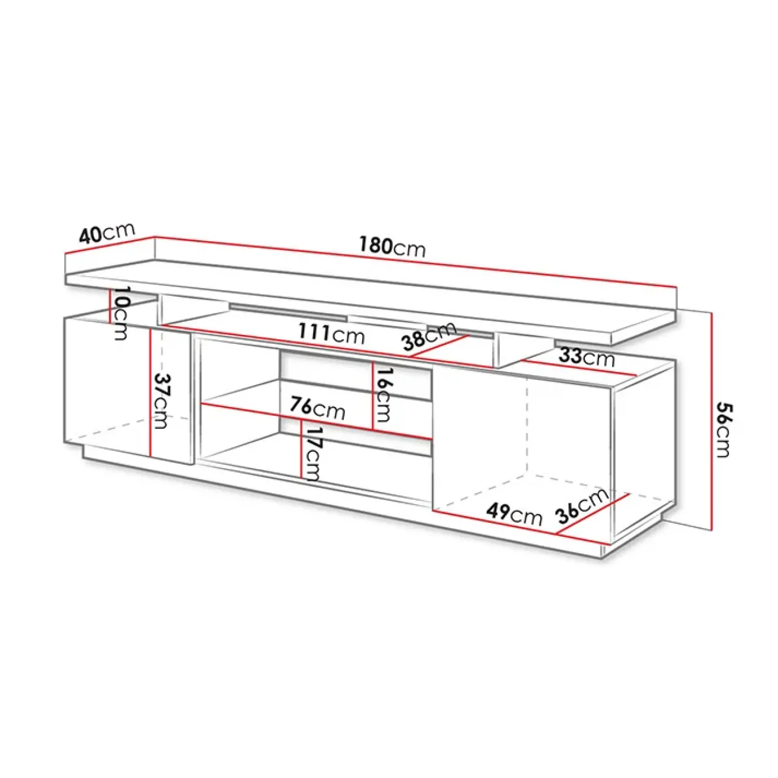 Mobile porta tv 180x56cm con led grafite lucido Blackburn