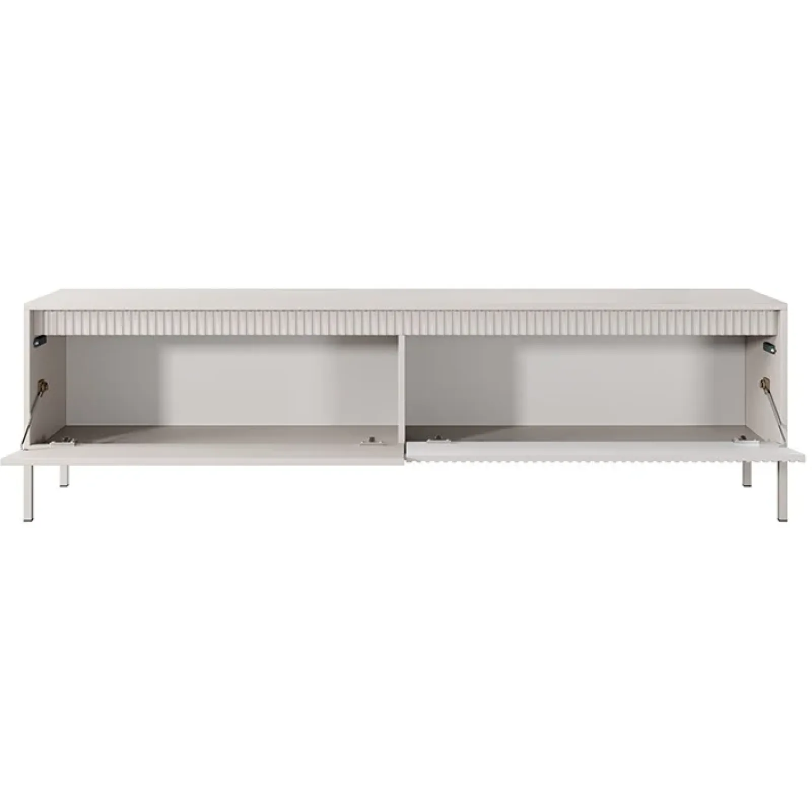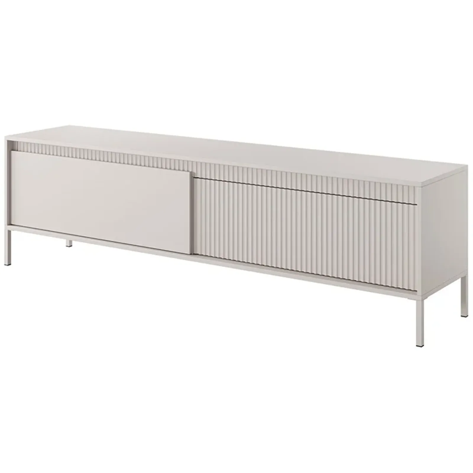 Il mobile porta TV Ciar è la scelta ideale per chi desidera unire un’eleganza raffinata alla praticità, il tutto racchiuso in un design moderno che trasforma il tuo soggiorno in uno spazio di classe! Disponibile in una raffinata finitura beige opaco, il mobile porta TV Ciar arricchisce il soggiorno con un tocco di modernità. Con un’anta in elegante beige opaco e l’altra con una lavorazione cannettata, questo mobile trasforma lo spazio in un’esperienza visiva incantevole e sofisticata, catturando l’attenzione e il cuore di chiunque lo osservi! La struttura poggia su piedini alti 15 cm in metallo beige, conferendo un aspetto leggero e contemporaneo. Le due pratiche ante a ribalta si aprono con un innovativo sistema push to open, permettendo un accesso immediato ai due vani interni, ideali per riporre dispositivi multimediali come decoder,videogiochi e altri accessori. La sua ampia superfice crea anche un palcoscenico ideale per decorazioni, lampade e accessori, trasformando il tuo soggiorno in un ambiente elegante e armonioso! Disponibile anche in altre finiture!