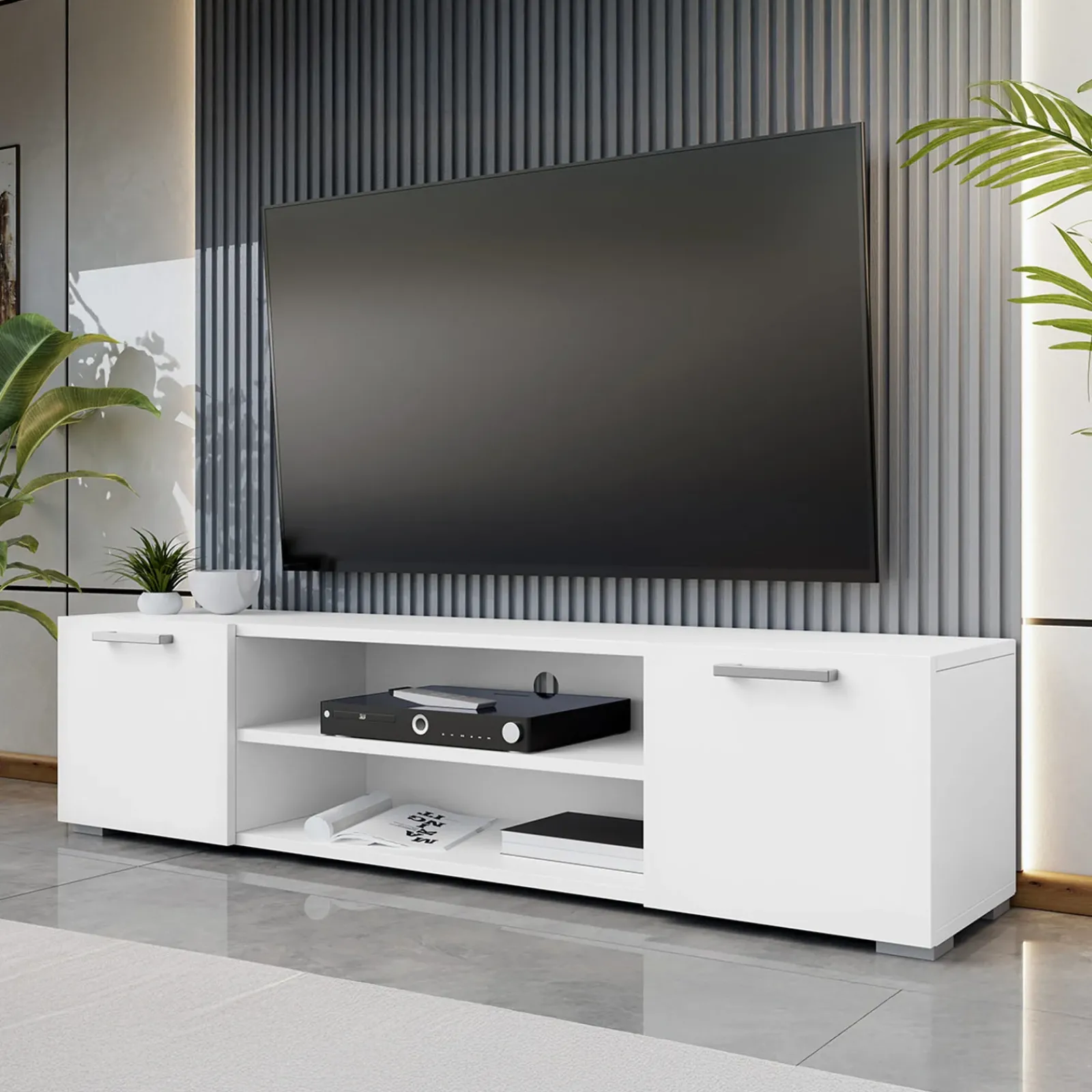 Mobile porta tv 156x36cm design moderno 2 ante bianco Pastello