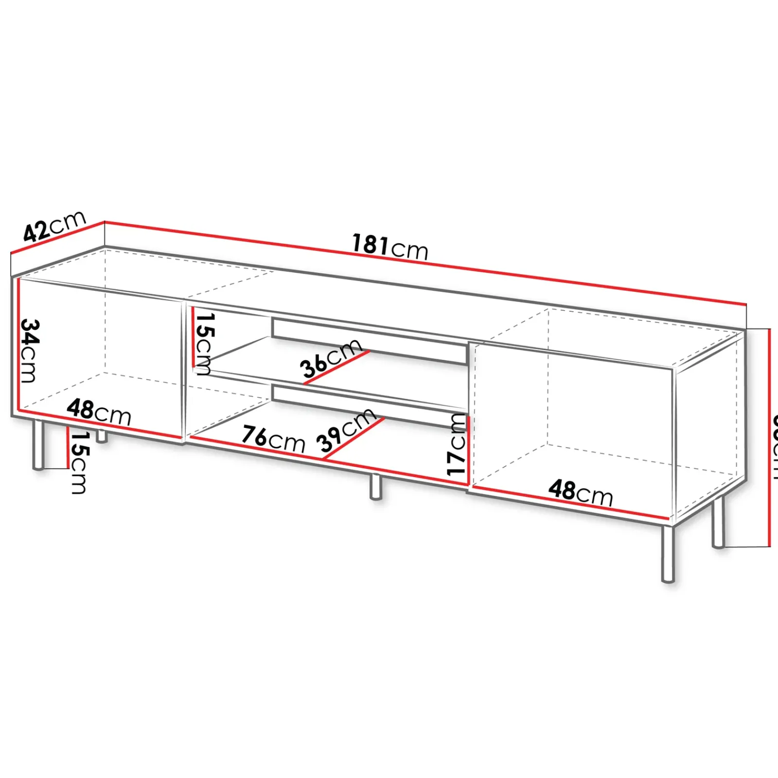 | Dimensioni | L.180,5 x H.53 x P.41,9 cm |