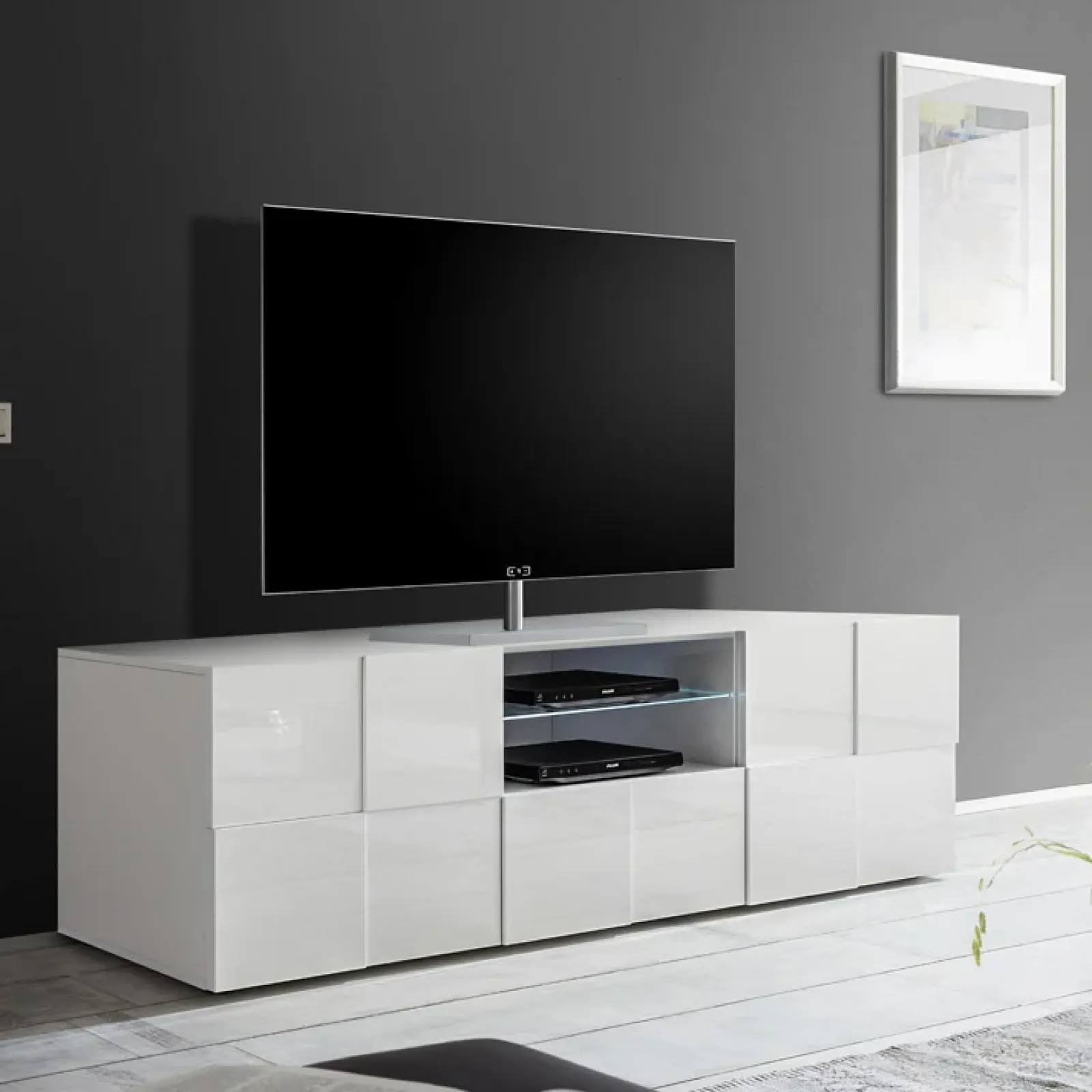 Mobiletto porta TV 2 ante 181x57x42cm bianco lucido Obsession