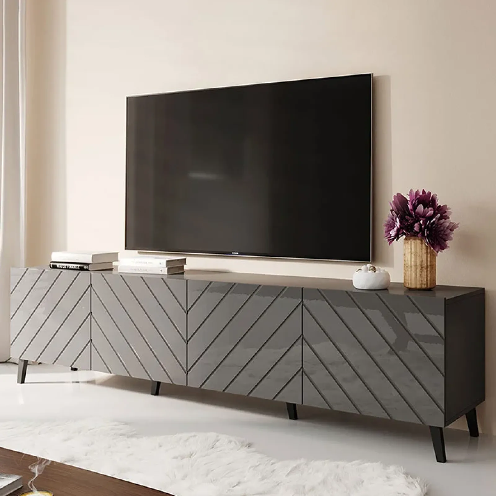 Mobile porta tv 4 ante con frontale decorato 200x52cm grigio lucido Placida