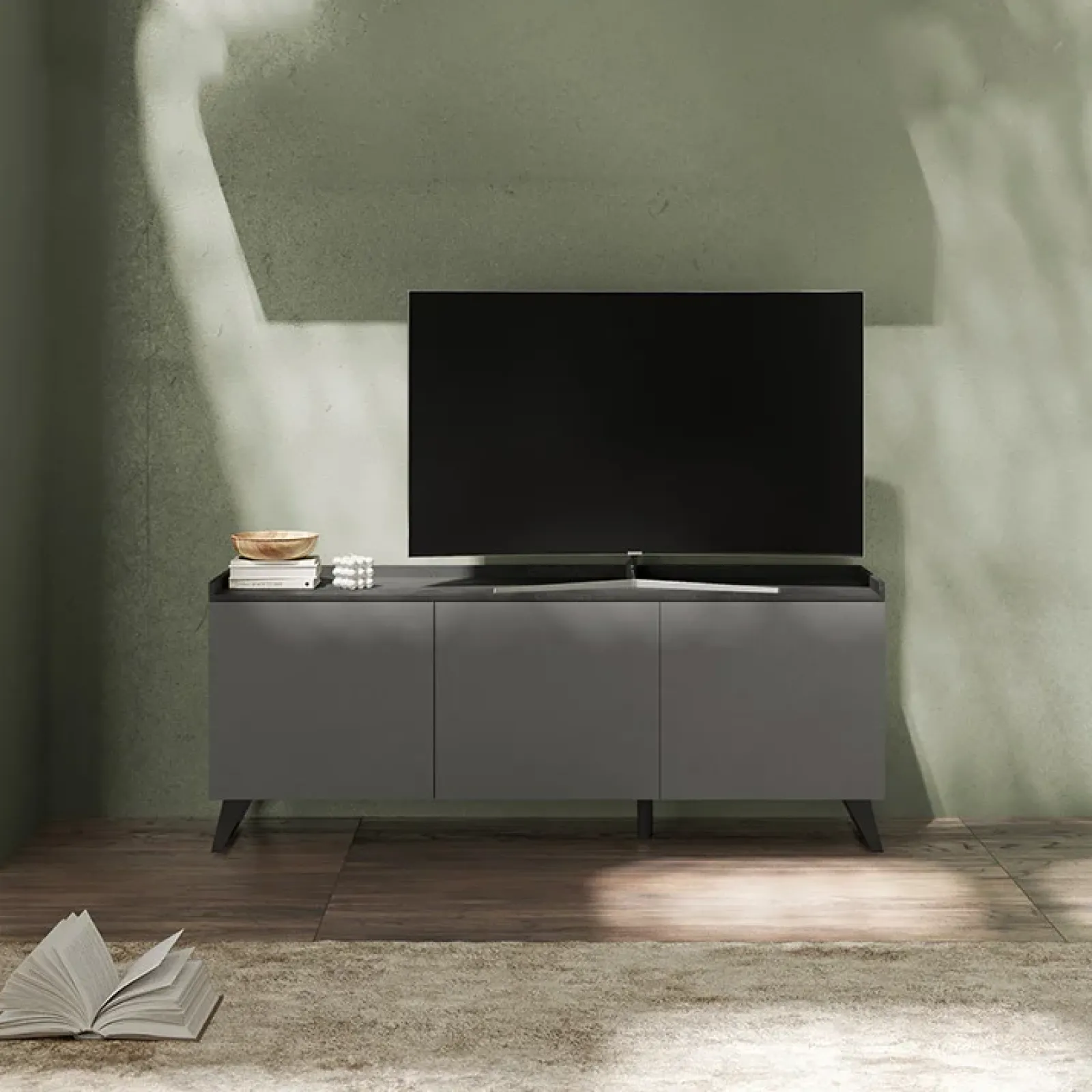 Porta tv 181x72cm 3 ante grigio scuro antracite Jonson