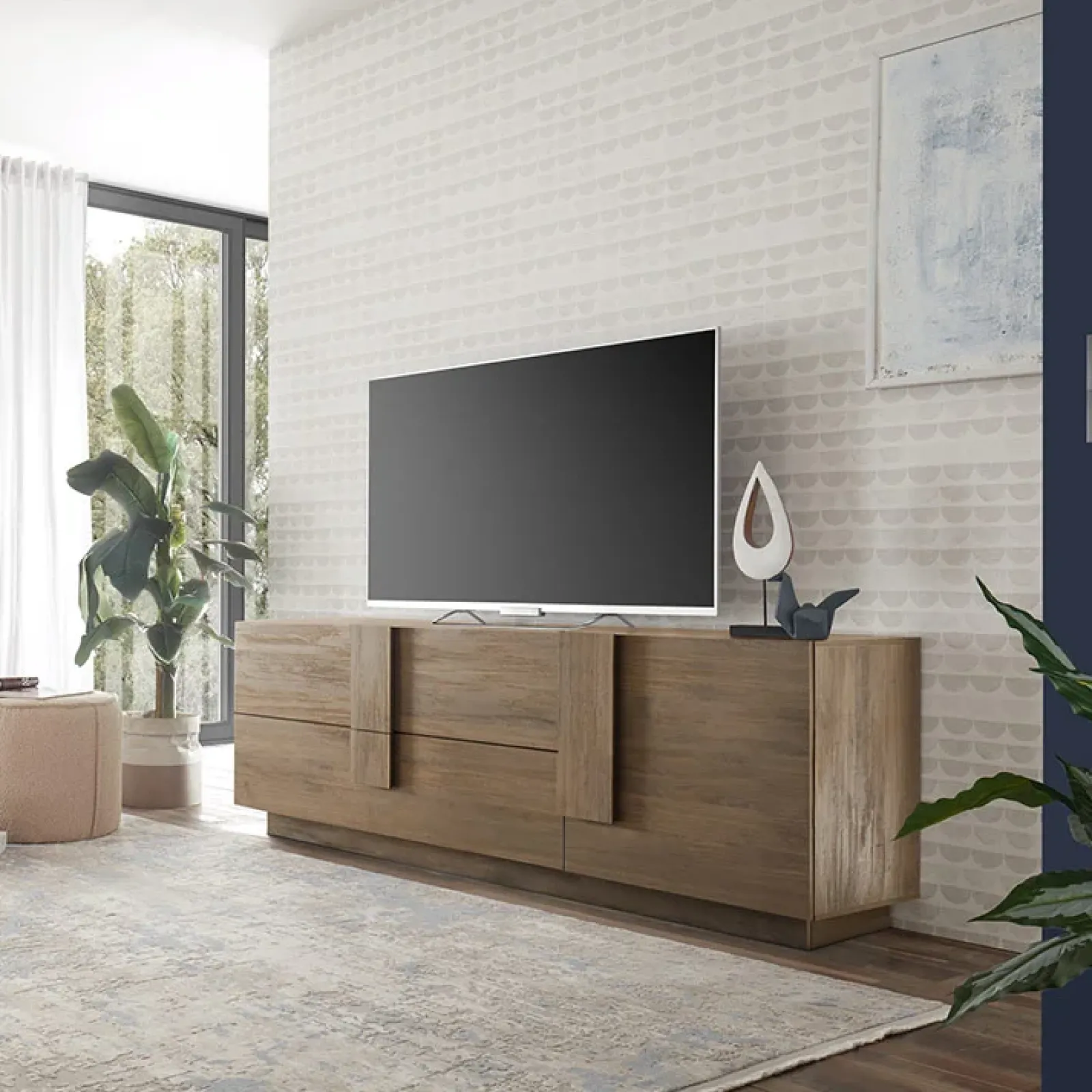 Mobile porta TV moderno 1 anta 2 cassetti Alvarez rovere