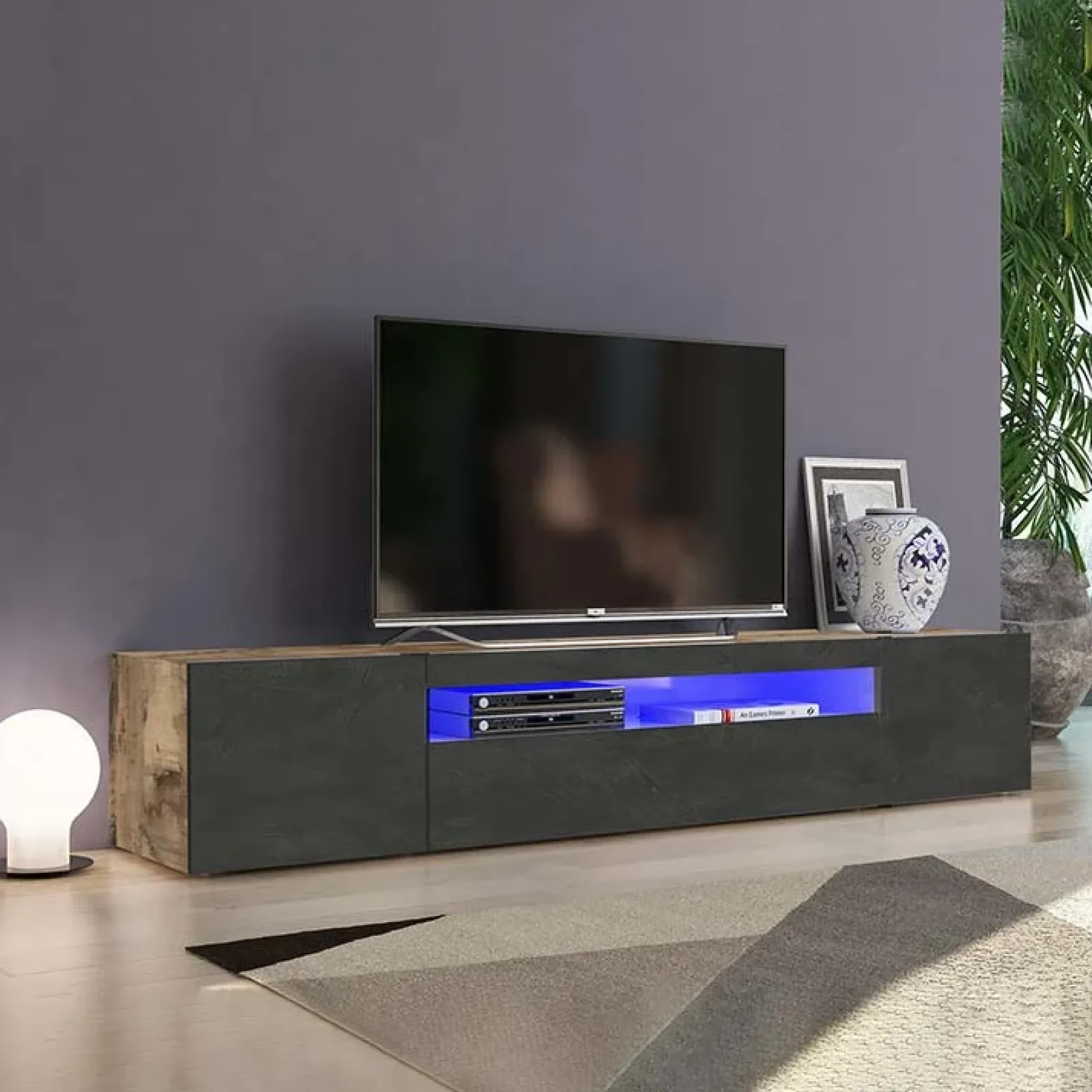 Garnero Arredamenti Mobile Tv In Legno|Mobile Tv Basso-Mobile porta TV 200x37h cm antracite pero Light Big Gihome® Antracite – Rovere Rustico