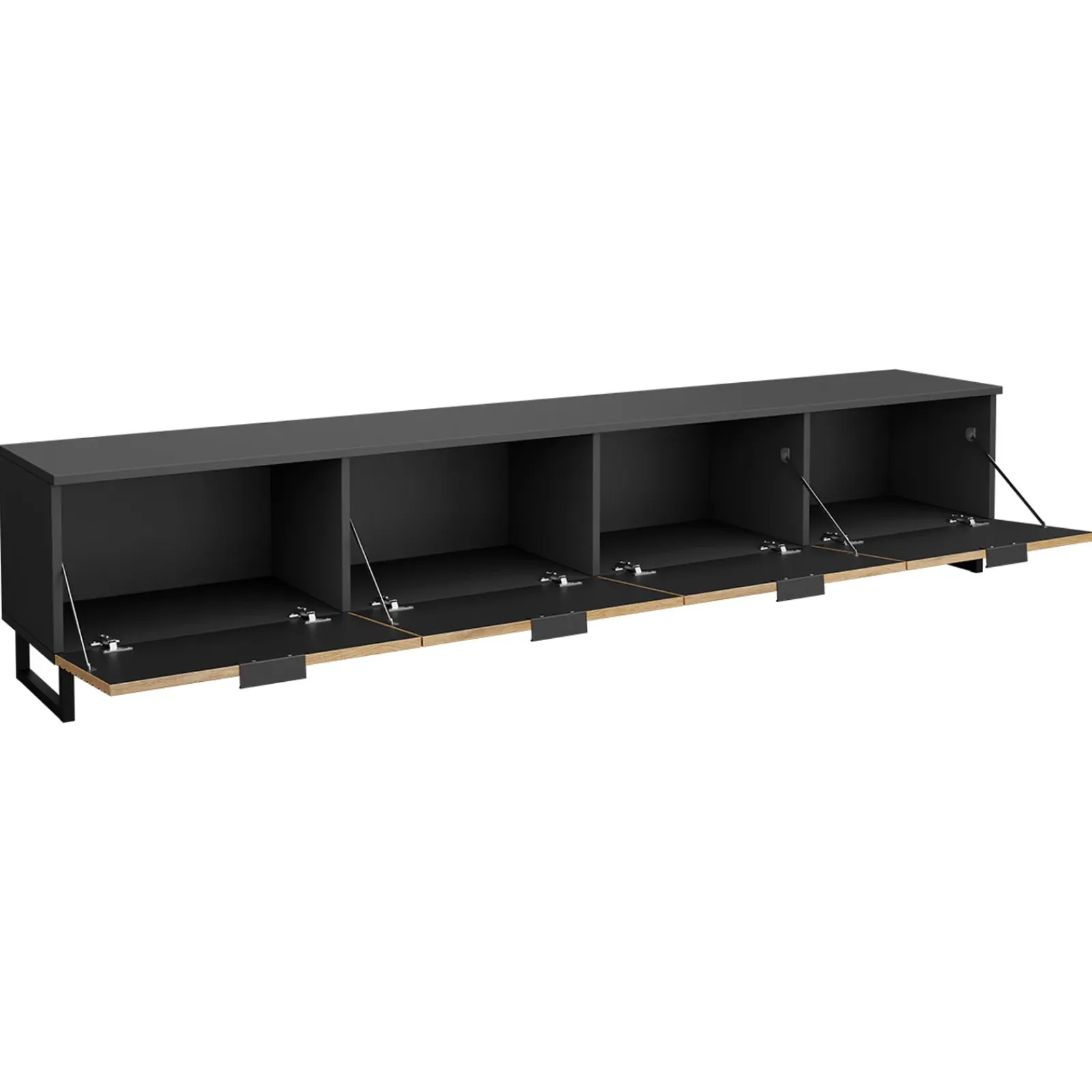 Mobile tv rustico 200x40cm design cannettato rovere nero List