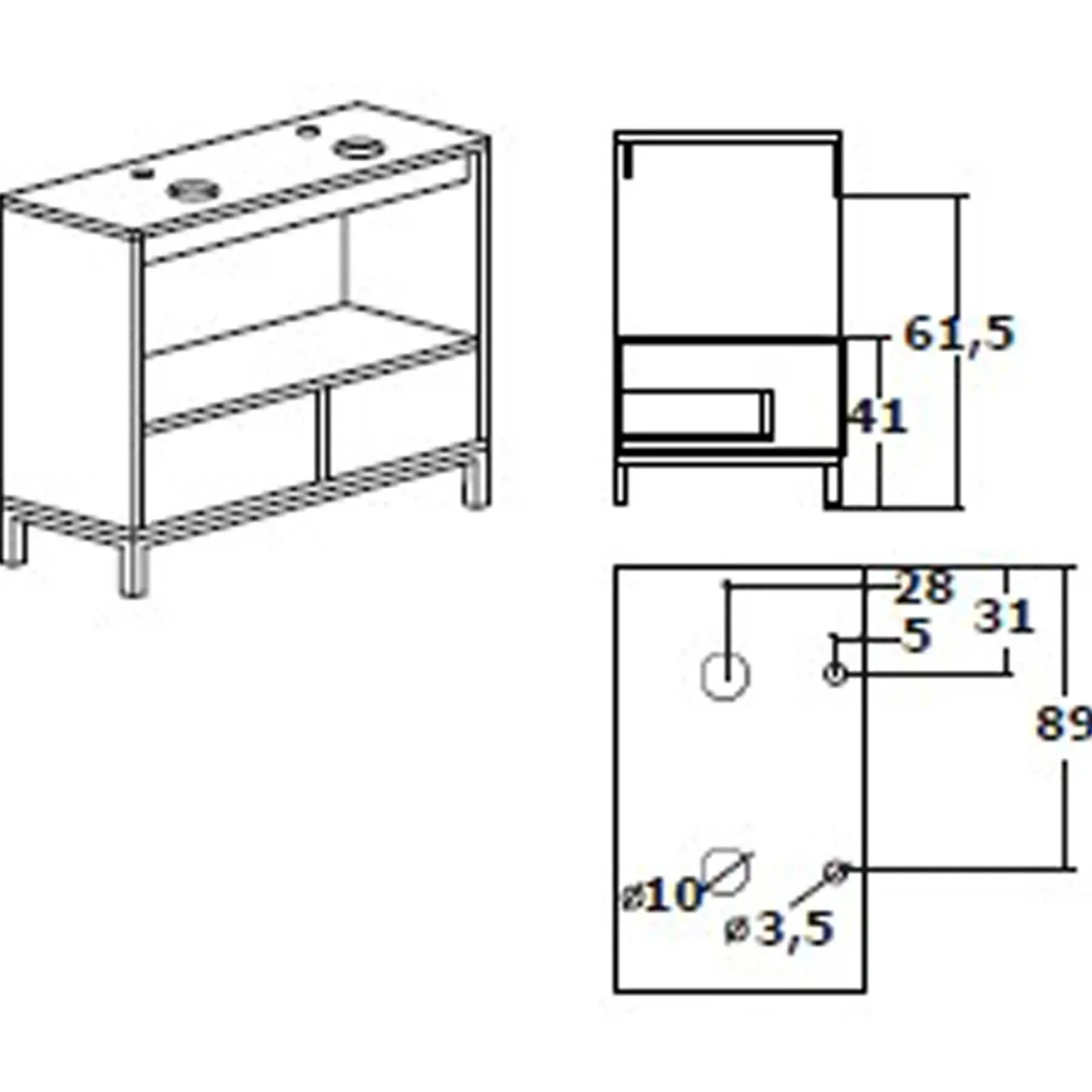 - base: 1 anta a vasistas, 2 cassetti, 4 piedini rialzati