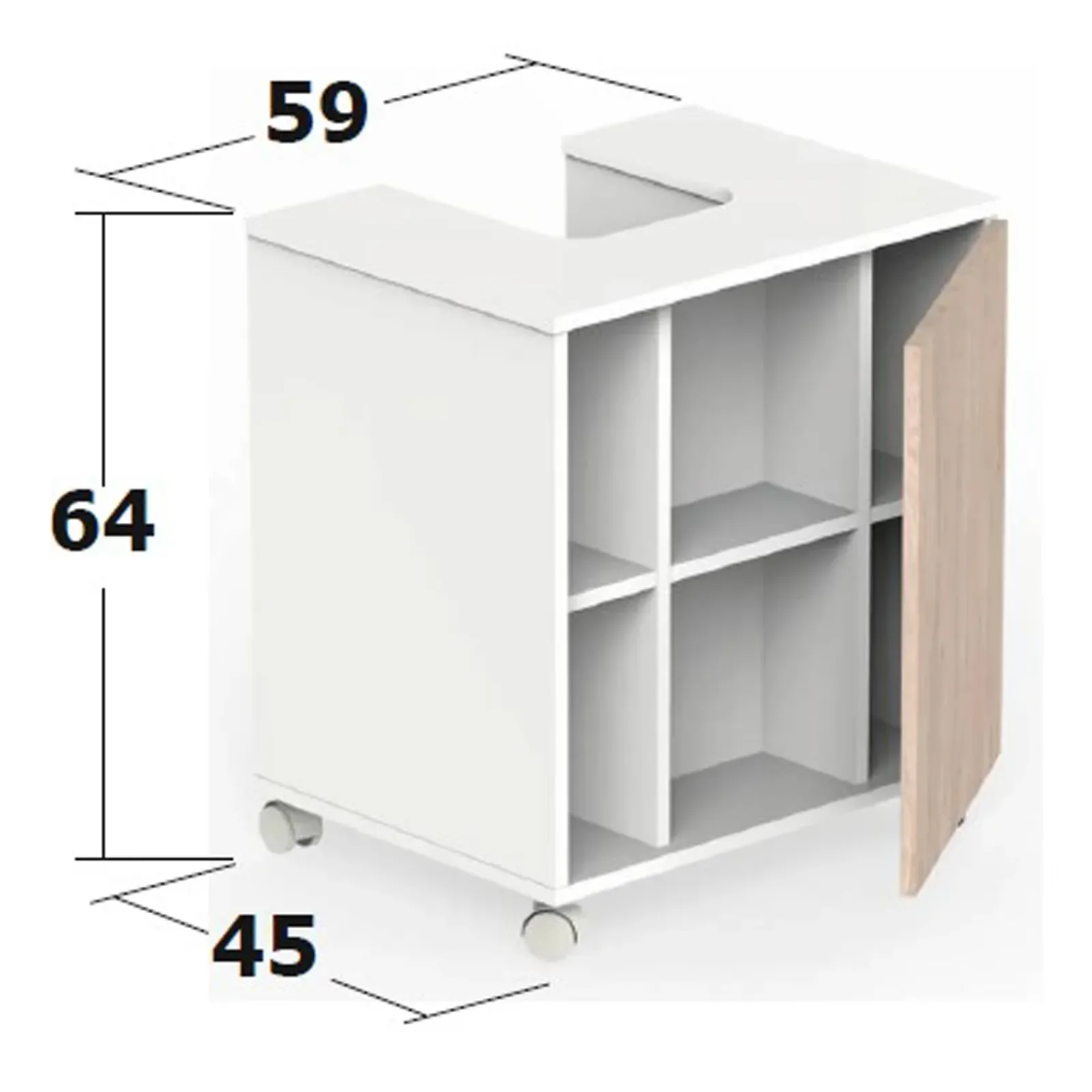 Base bagno 64x59cm con ruote 1 anta rovere bianco Irma