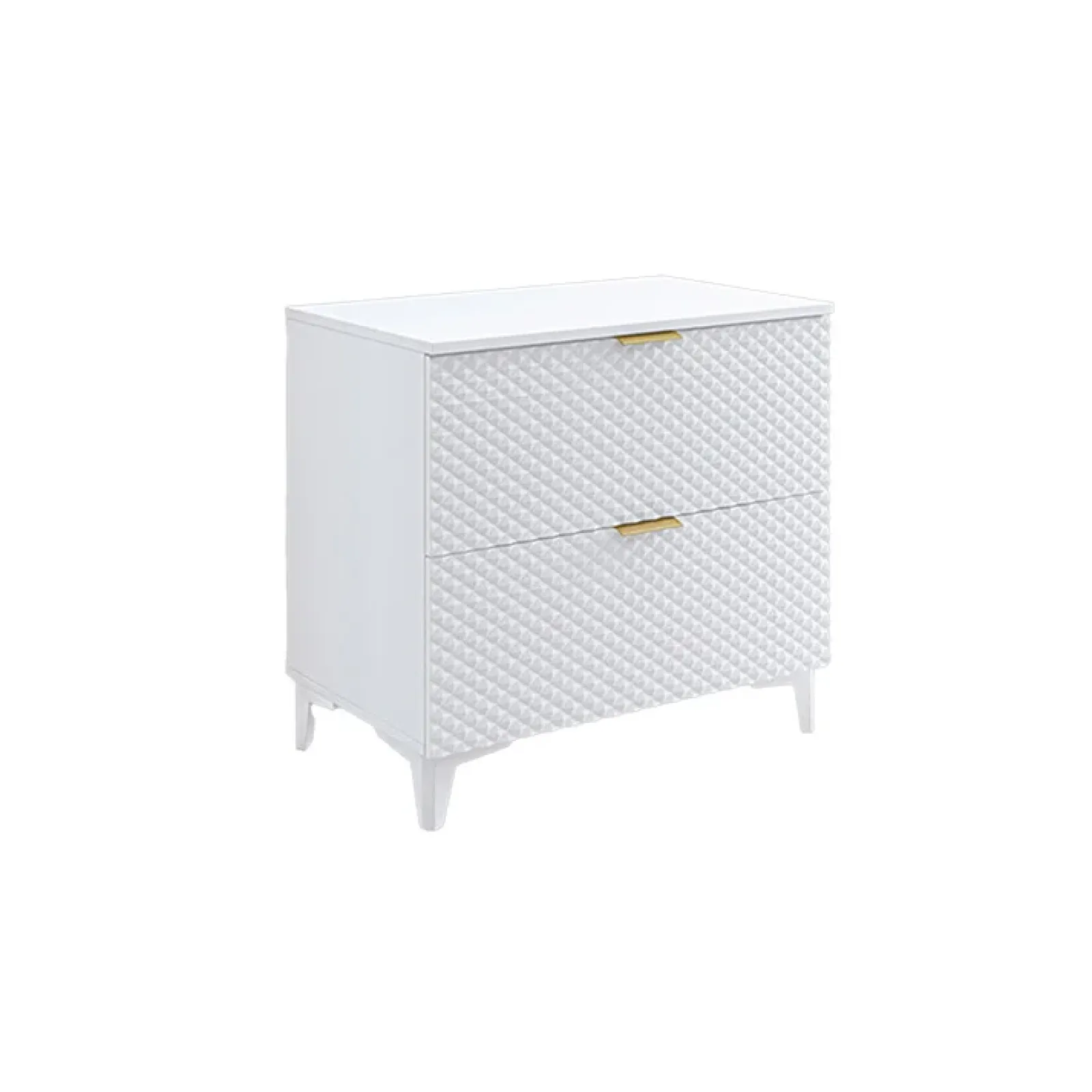 Organizza il tuo bagno unendo eleganza e praticità con il mobile a terra Konny! Progettato per accogliere il tuo lavabo con stile, è composto da due 2 ampi cassetti in cui potrai posizione tutti i tuoi asciugamanti e i tuoi prodotti preferiti! Il cassetto superiore è dotato di vano sifone! Stile e funzionalità in un mobile da bagno, i cui cassetti sono decorati frontalmente con piramidi geometriche in rilievo in finitura bianco opaco: il perfetto incontro tra contemporaneo e comodità! Sono facilmente apribili tramite le maniglie metalliche dorate. La finitura bianco lucido conferisce un senso di leggerezza al mobile, dando al tuo bagno un stile moderno ed elegante. Dotato di due comodi piedini bianchi per una maggiore facilità di spostamento e facilità di montaggio!