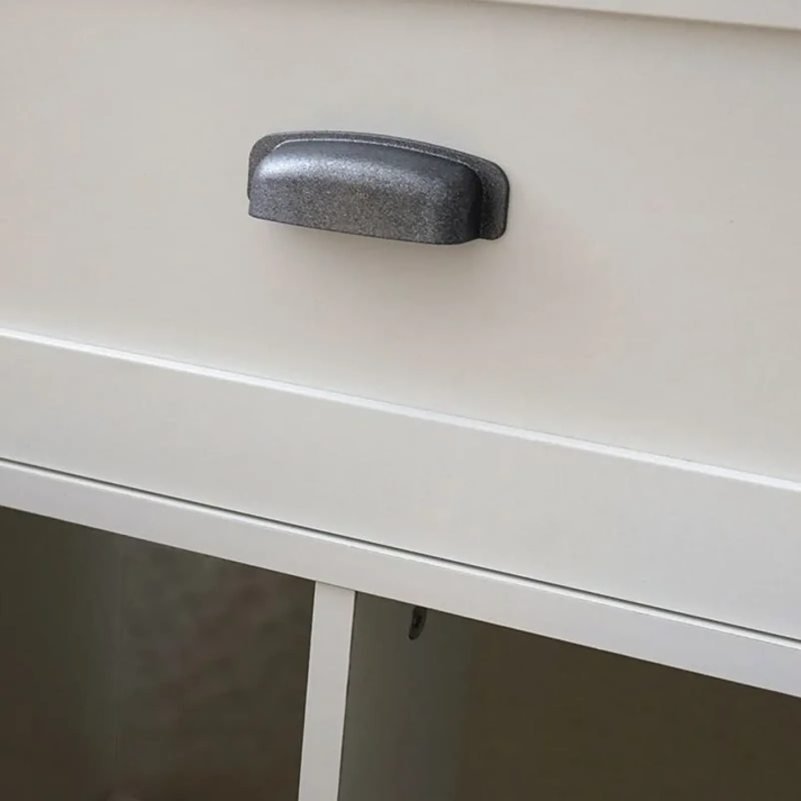 Dal design semplice e pulito, è dotato di due ante battenti con maniglie in colore grigio alluminio. Il cassettone ha grande ampiezza ed è perfetto per cosmetici e trucchi.