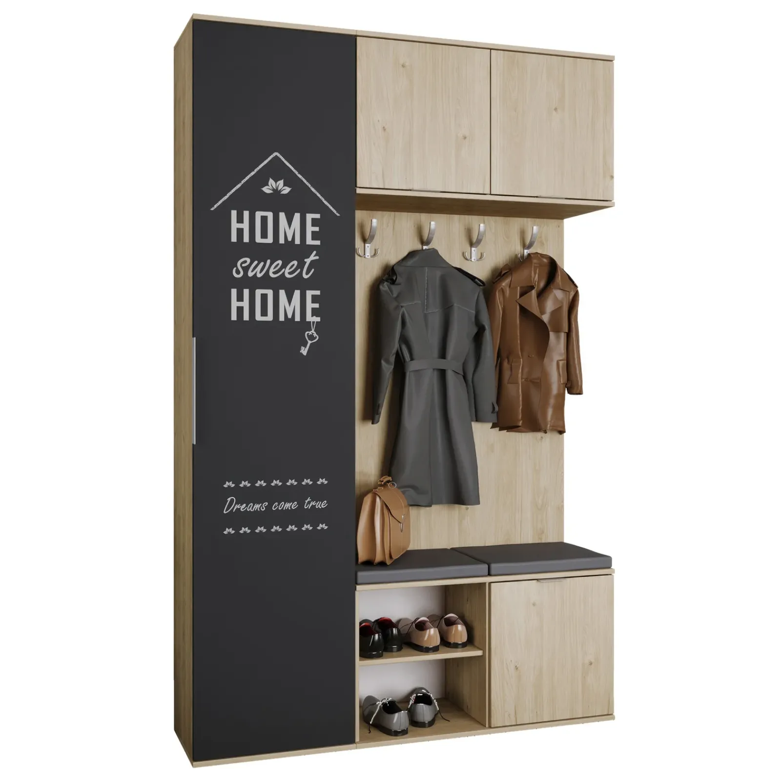 Garnero Arredamenti Mobili Ingresso Appendiabiti|Mobili Ingresso-Mobile ingresso 140x220h cm rovere antracite Stoccolma