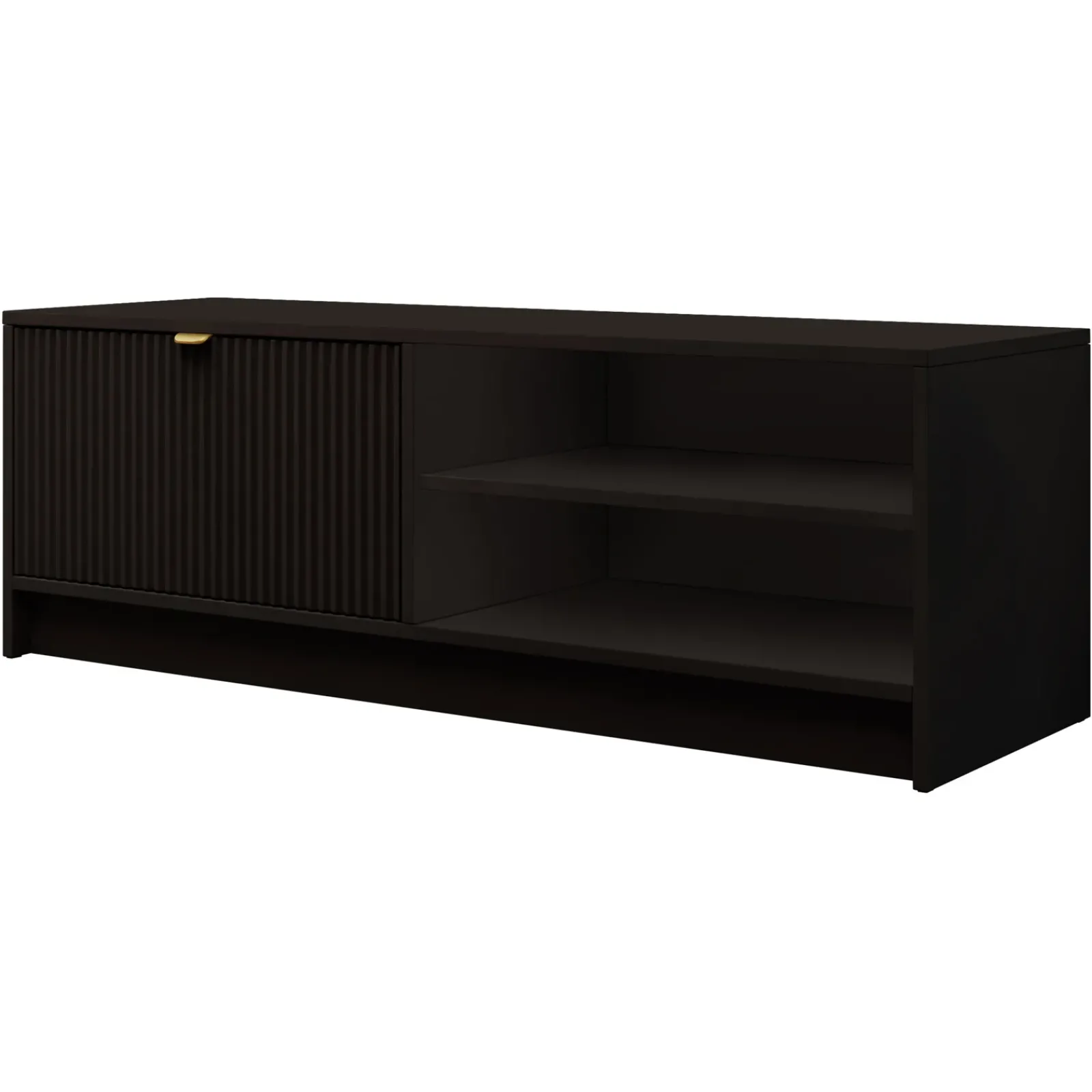 Garnero Arredamenti Mobili Tv Moderni|Mobile Tv Moderno-Mobile porta tv 120x40h cm 1 anta 2 vani a giorno cannettato nero Athena Nero Opaco